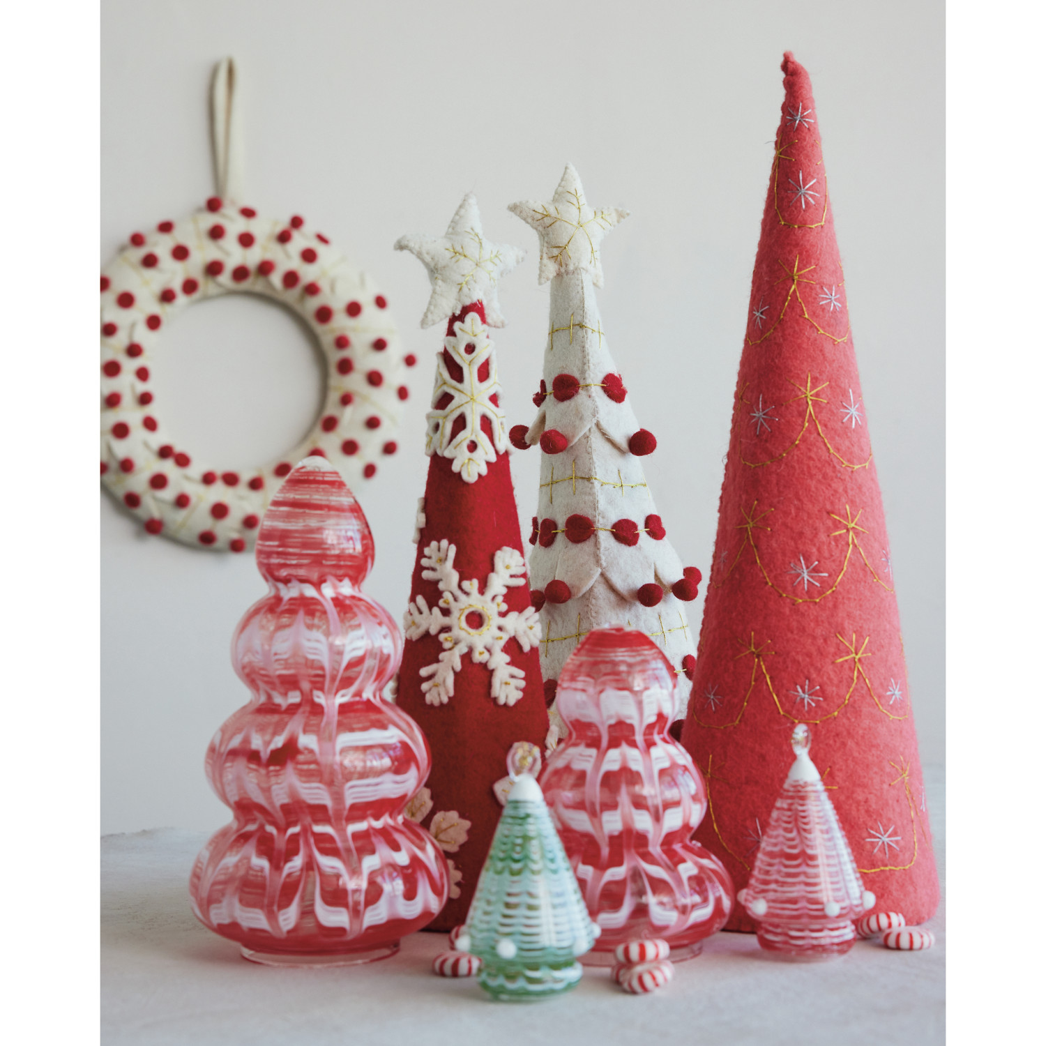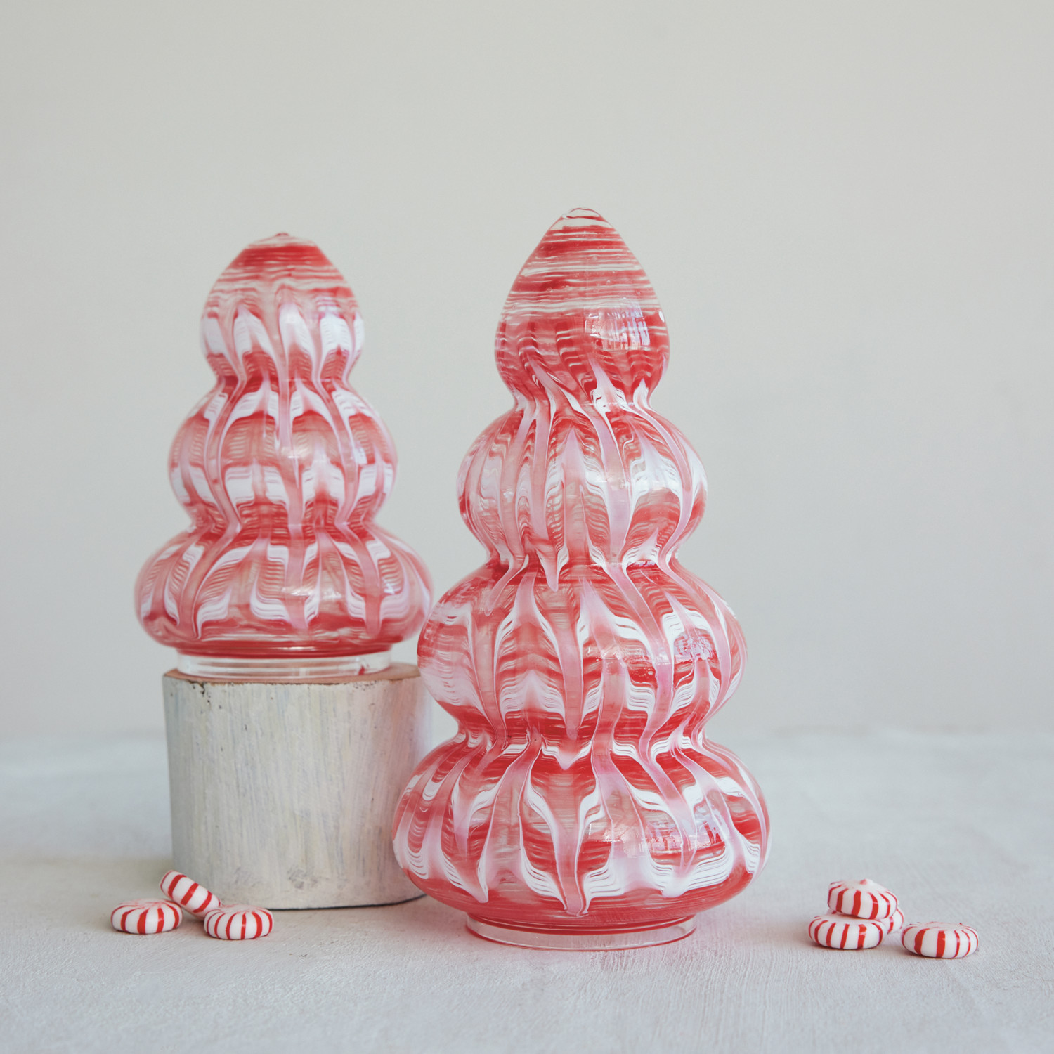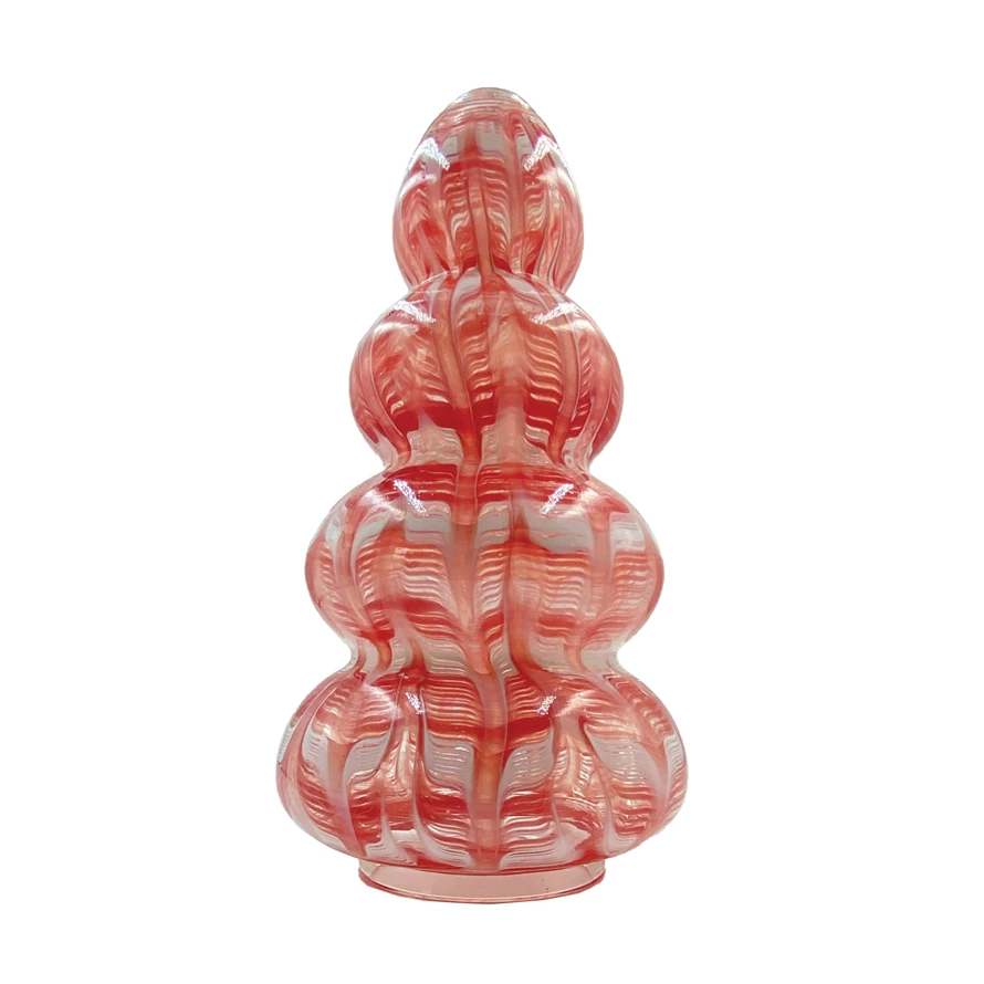 Hand-Blown Art Glass Tree, Red & White (Each One Will Vary)