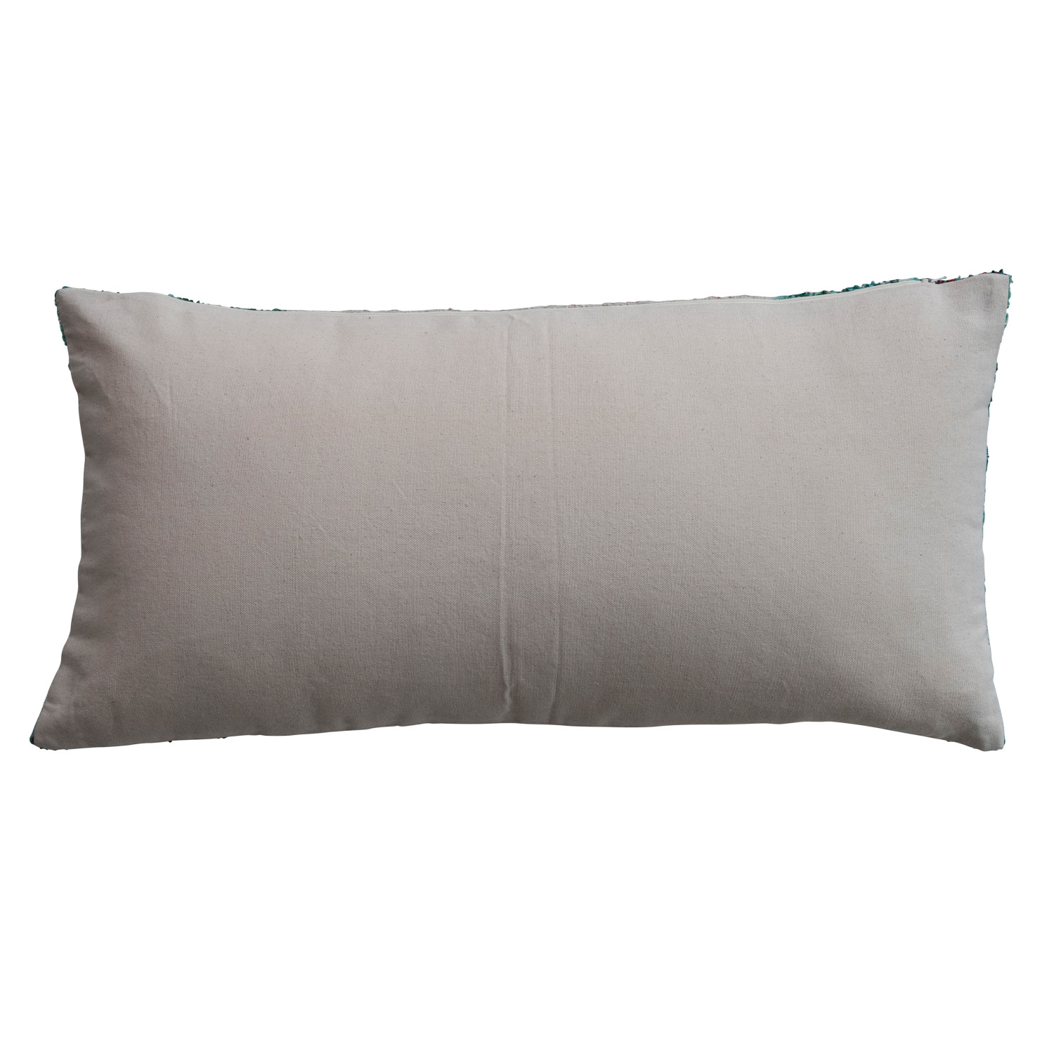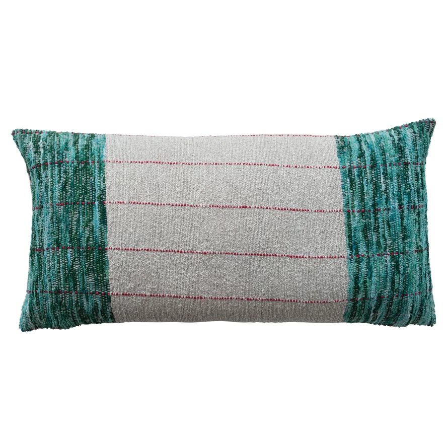 Catalog Name: 28"L x 14"H Woven Cotton Slub & Melange Striped Lumbar Pillow, Natural, Green & Red