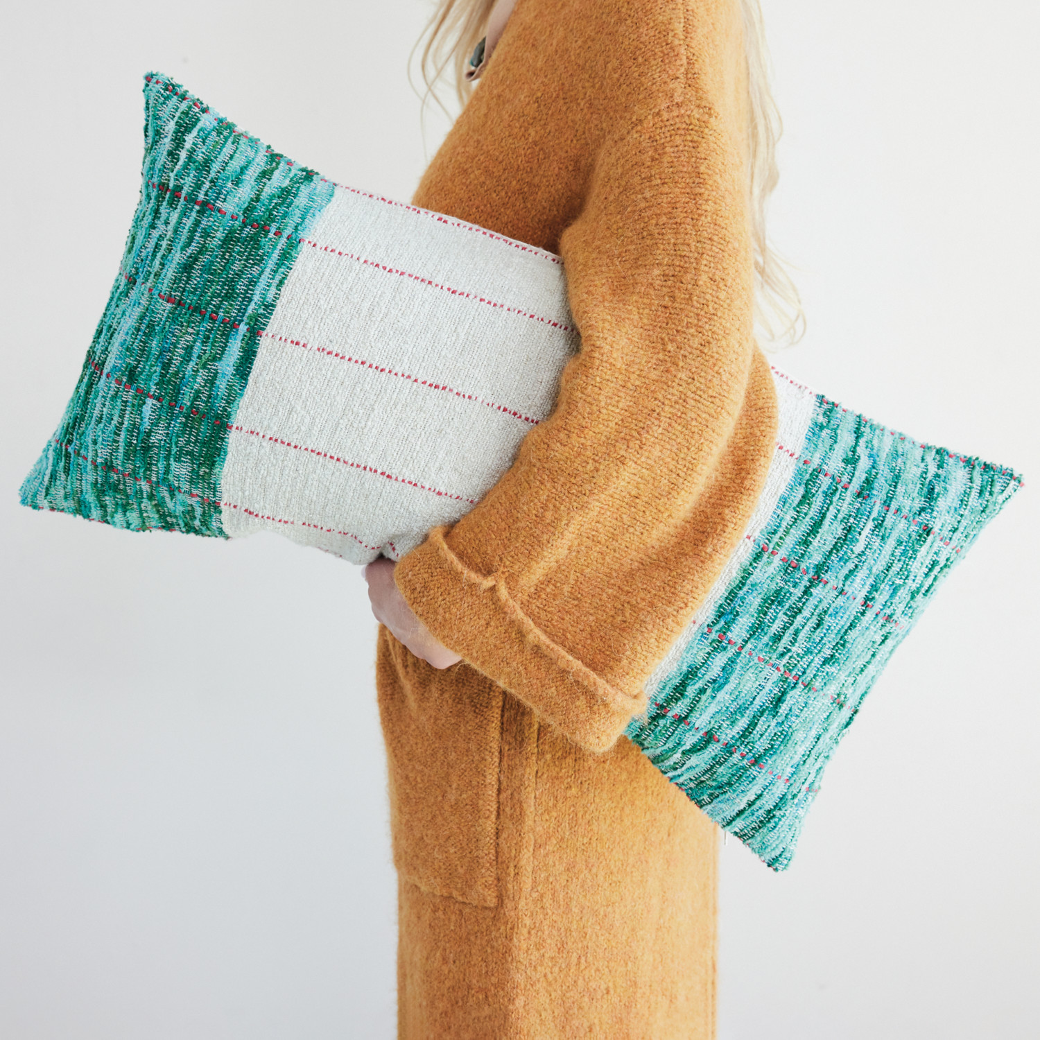 Woven Cotton Slub & Melange Striped Lumbar Pillow