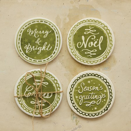 Catalog Name: 10-1/2" Square Cotton Printed Waffle Weave Dish Cloths w/ Tree/Holly Pattern, Natural, Green & Red, Set of 2 Tied w/ Cotton Tape
