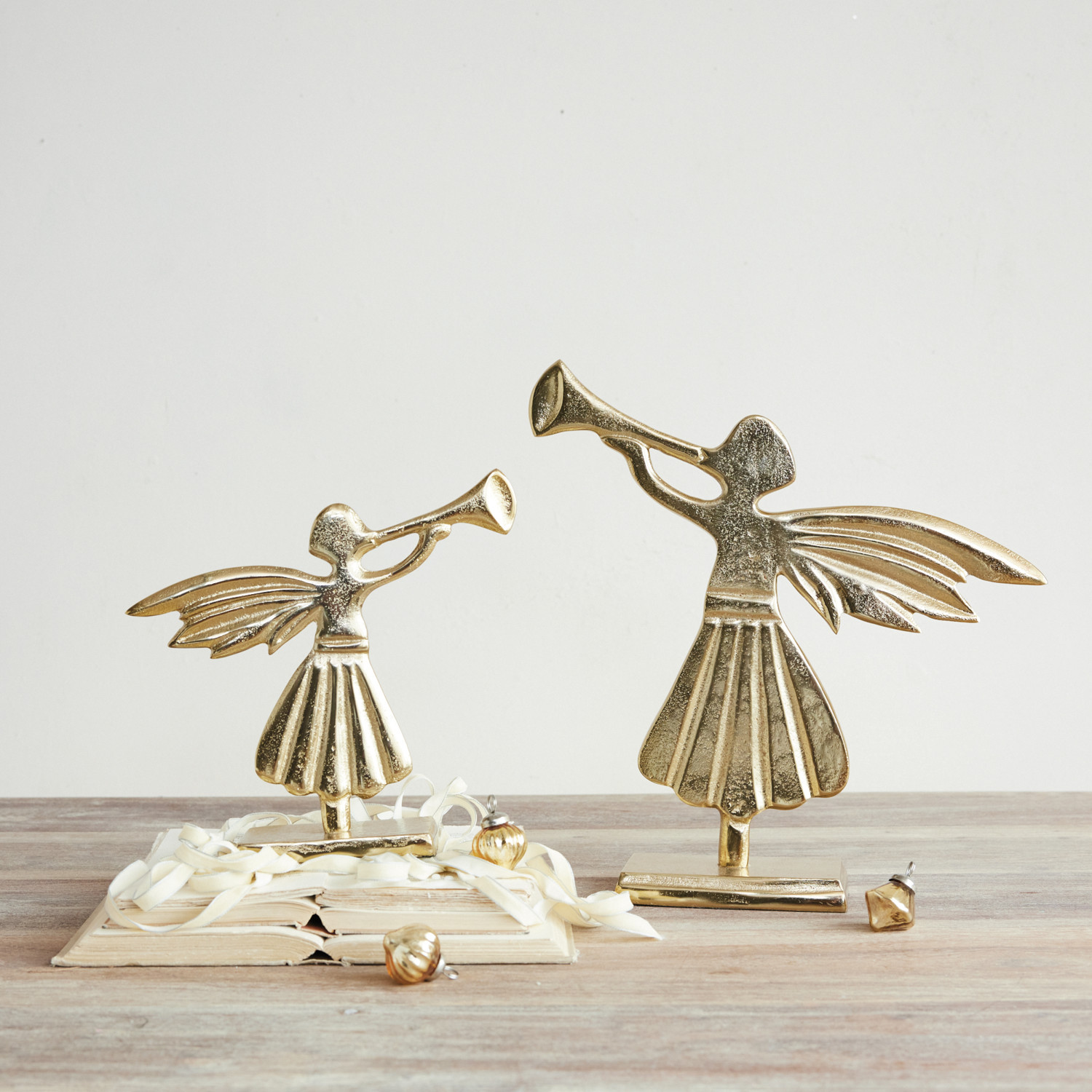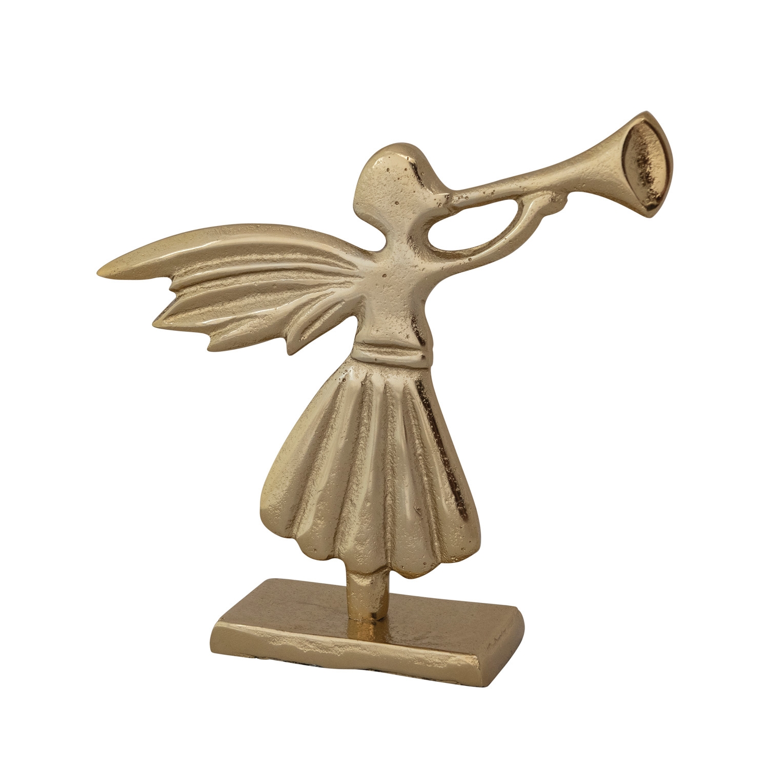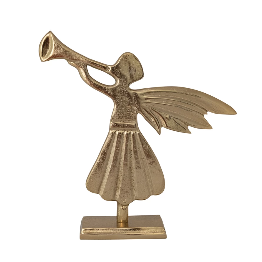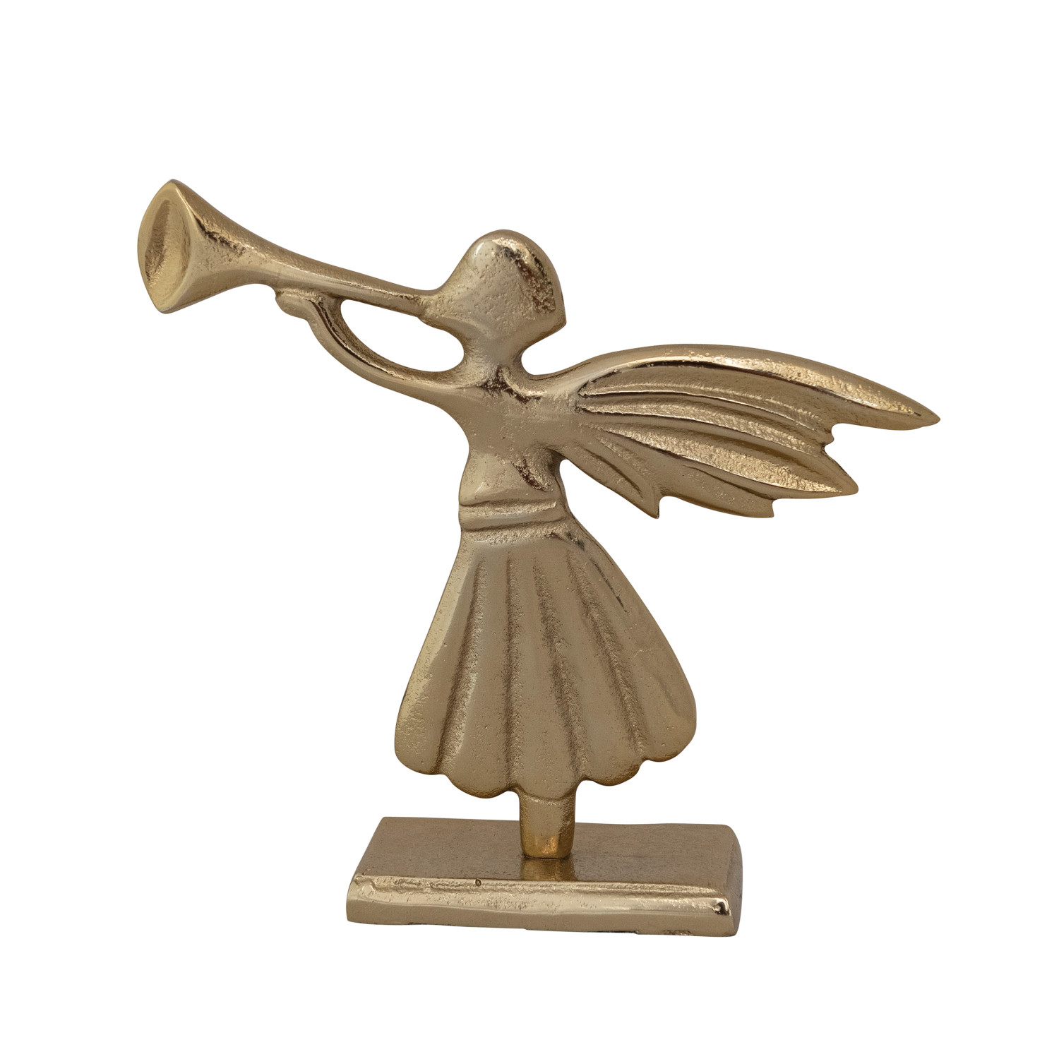 Catalog Name: 9-1/4"L x 2-1/2"W x 9"H Cast Aluminum Two-Sided Angel w/ Trumpet, Gold Finish