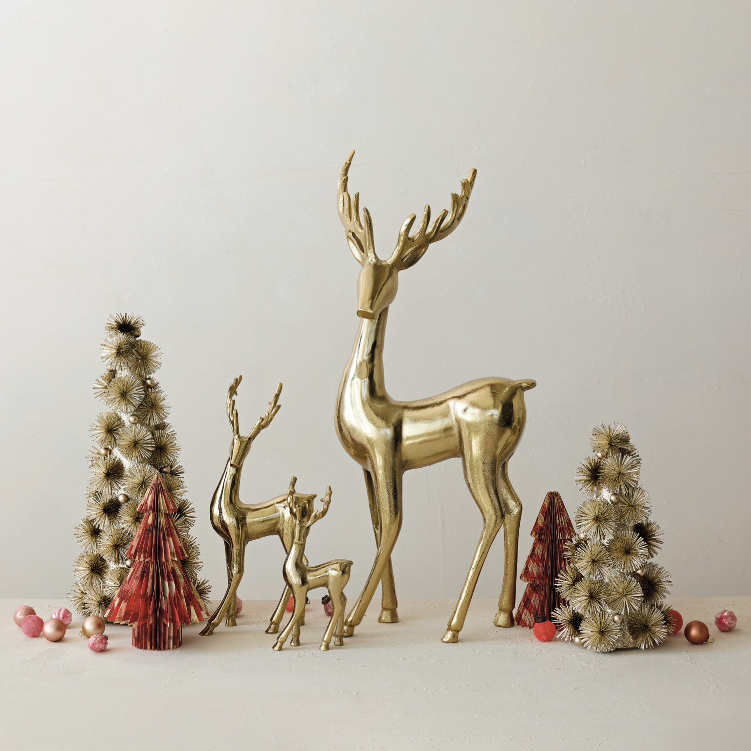 Catalog Name: 12"L x 7"W x 29"H Cast Aluminum Deer, Gold Finish, Truck Ship