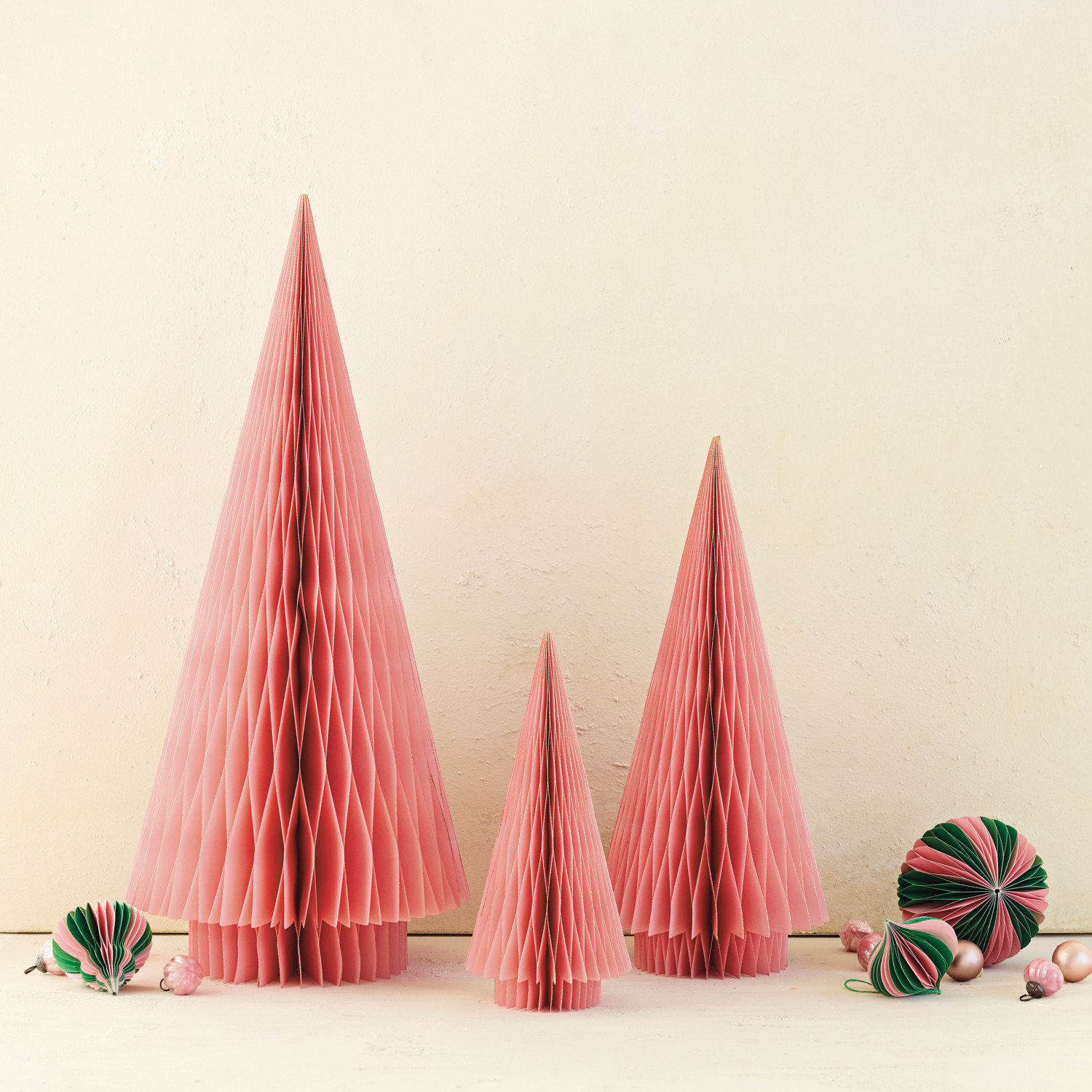 Handmade Recycled Paper Folding Honeycomb Tree with Gold Glitter Edges, Pink