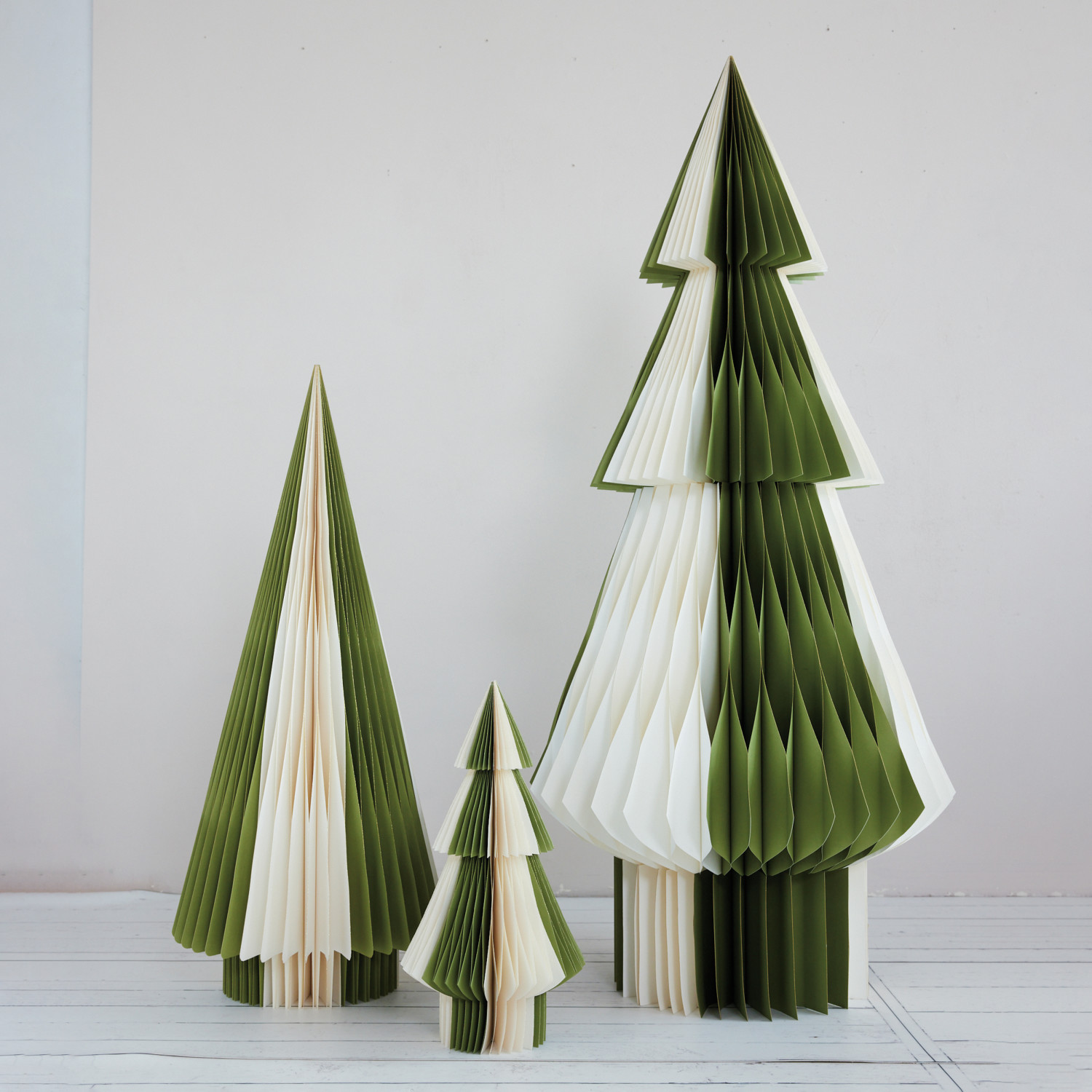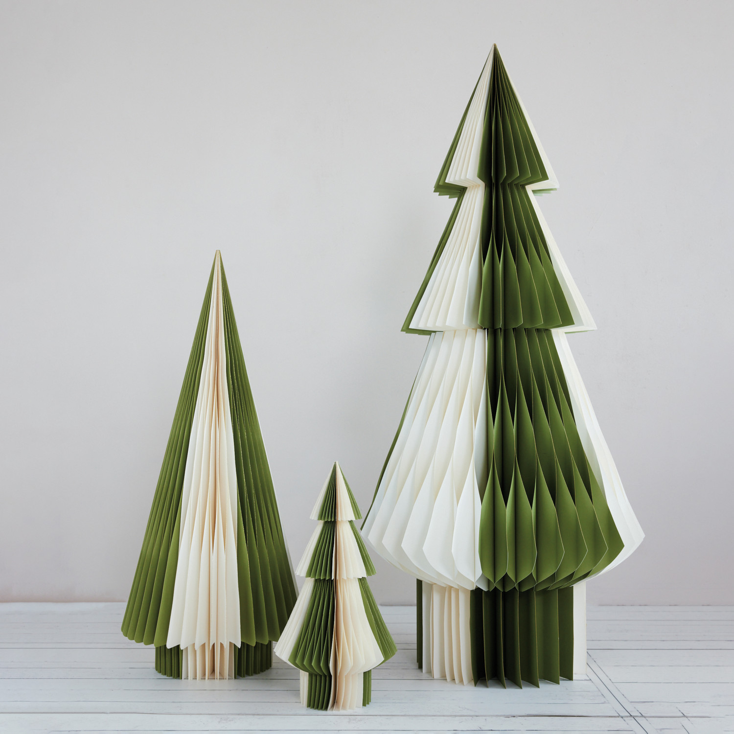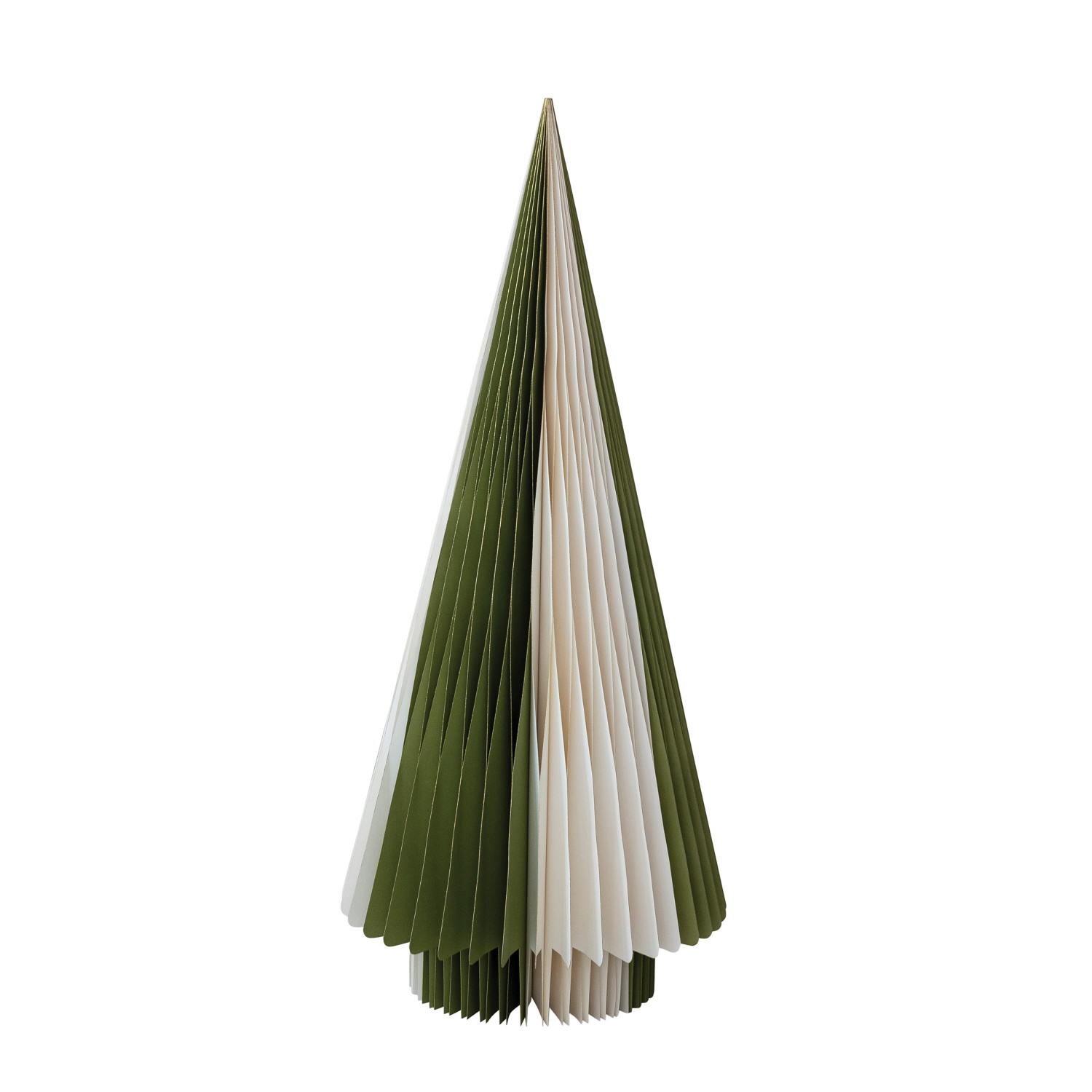 Catalog Name: 15-1/2" Round x 36"H Handmade Recycled Paper Folding Honeycomb Tree w/ Gold Glitter Edges, Green & Ivory Color