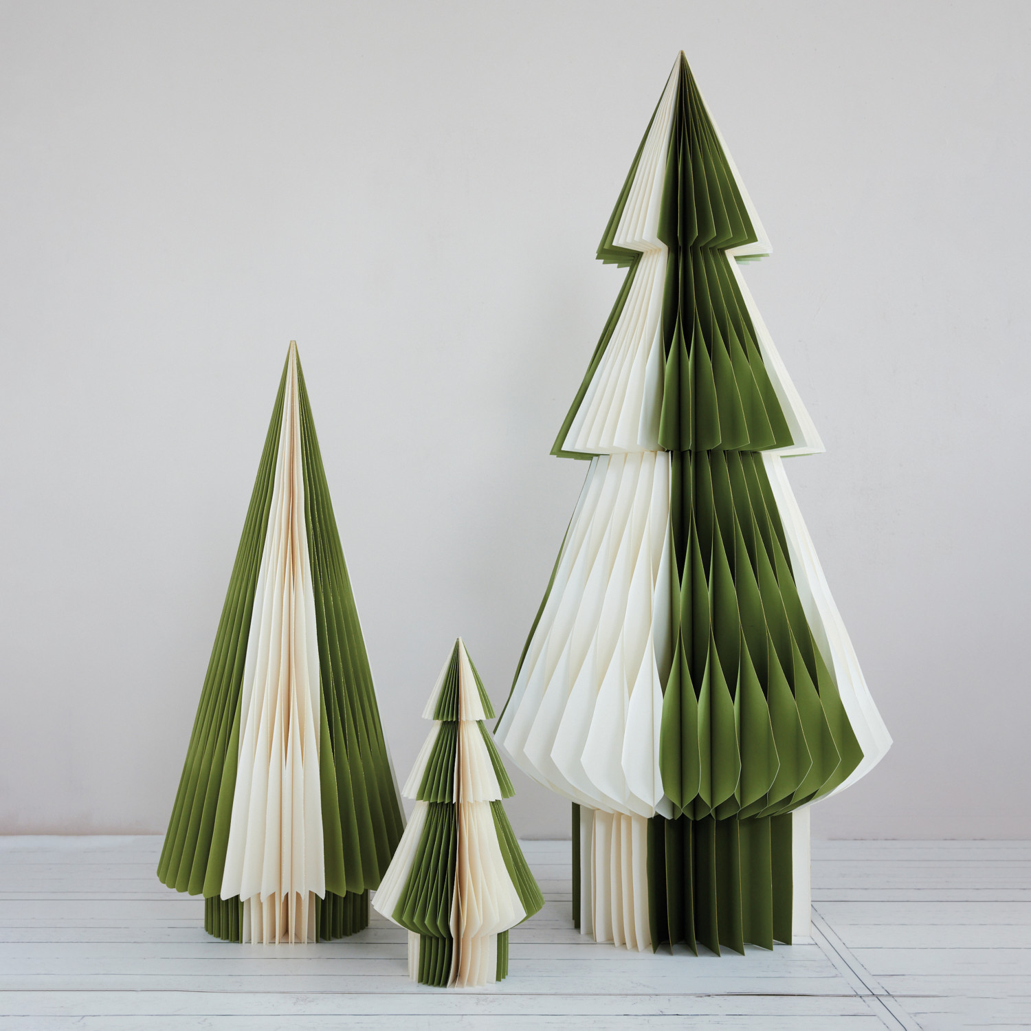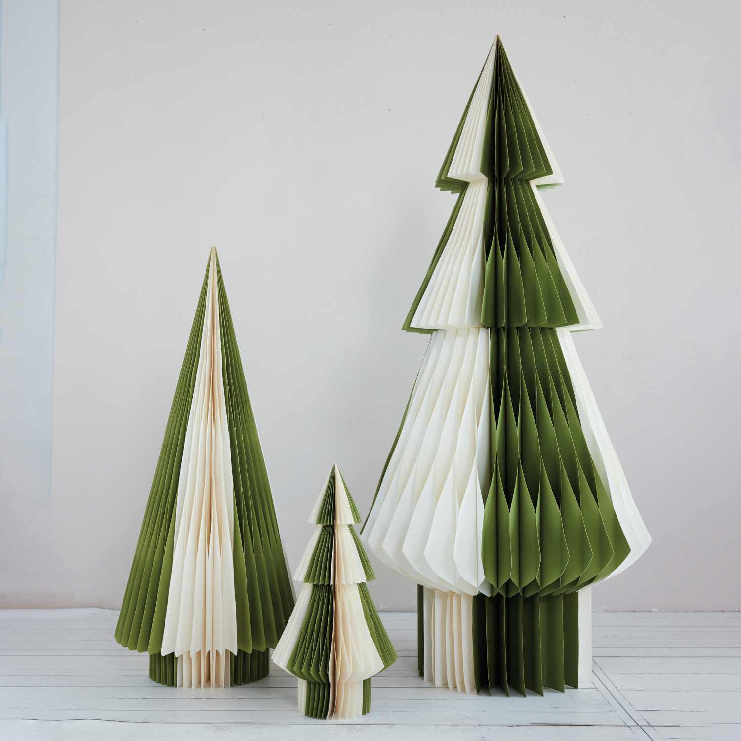 Catalog Name: Handmade Recycled Paper Folding Honeycomb Tree w/ Gold Glitter Edges, Green & Ivory Color