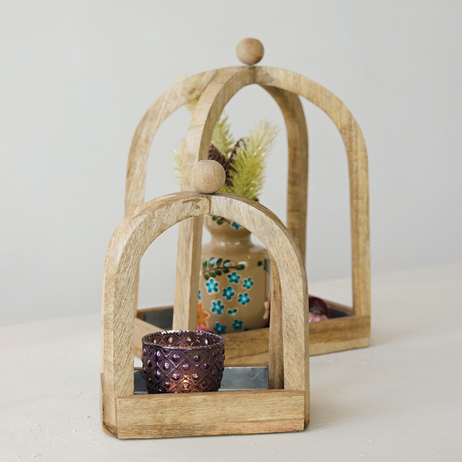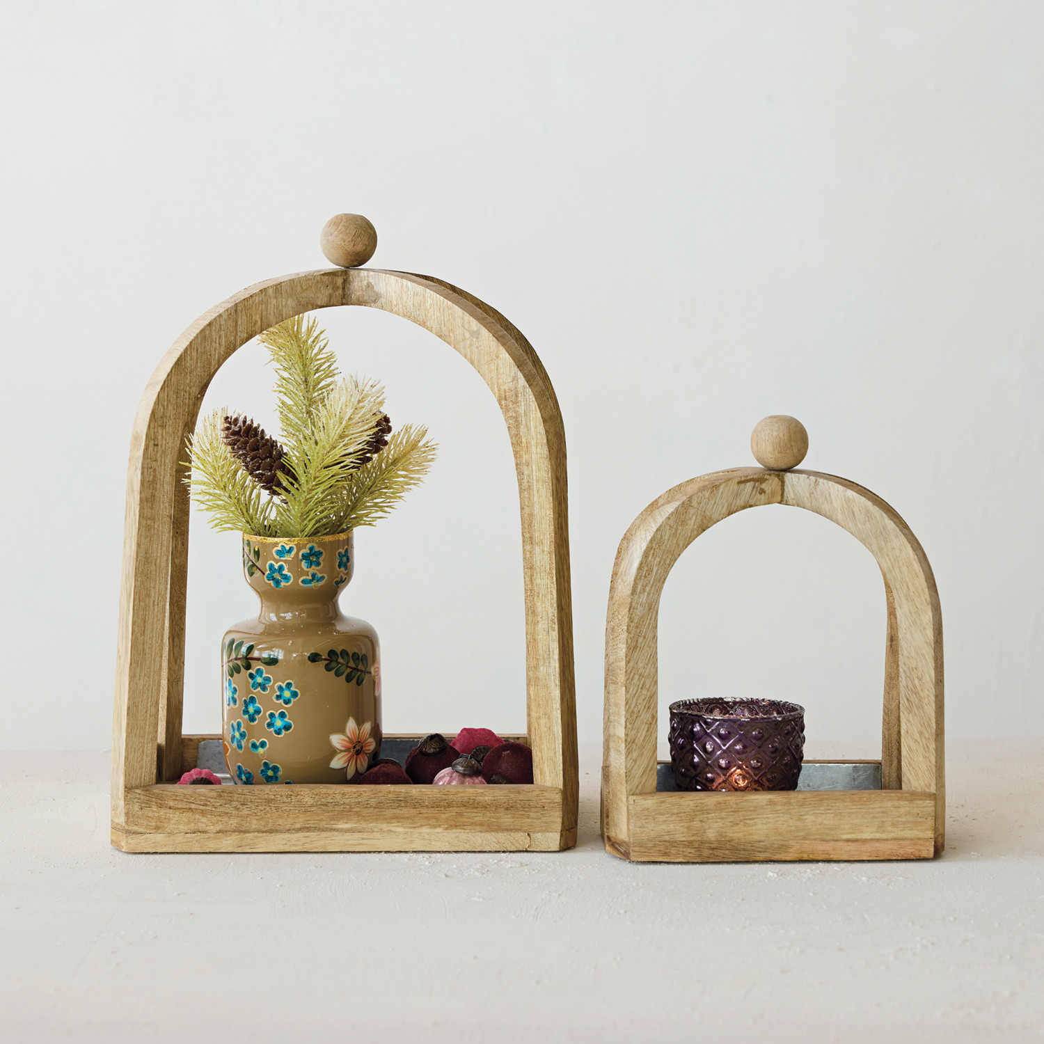 Catalog Name: 9-3/4"L x 6"W x 13-1/4"H & 7"L x 4"W x 9"H Mango Wood Arched Table Top Décor w/ Metal Lined Base & Knob Handles, Natural, Set of 2