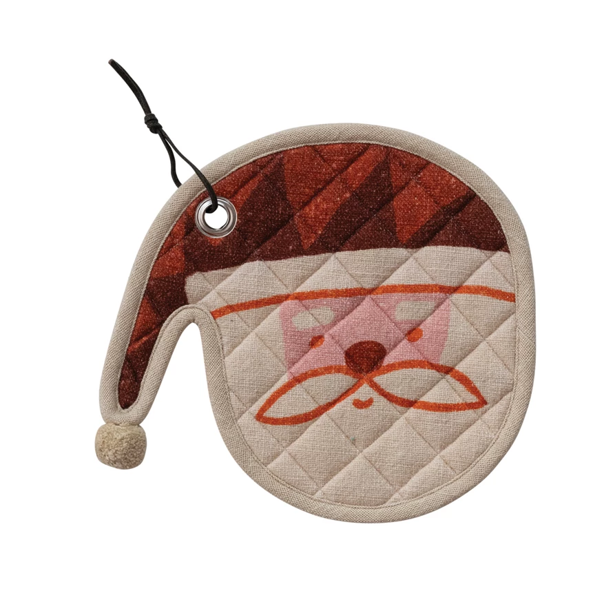 Cotton Quilted Santa Head Shaped Pot Holder with Pom Pom ©