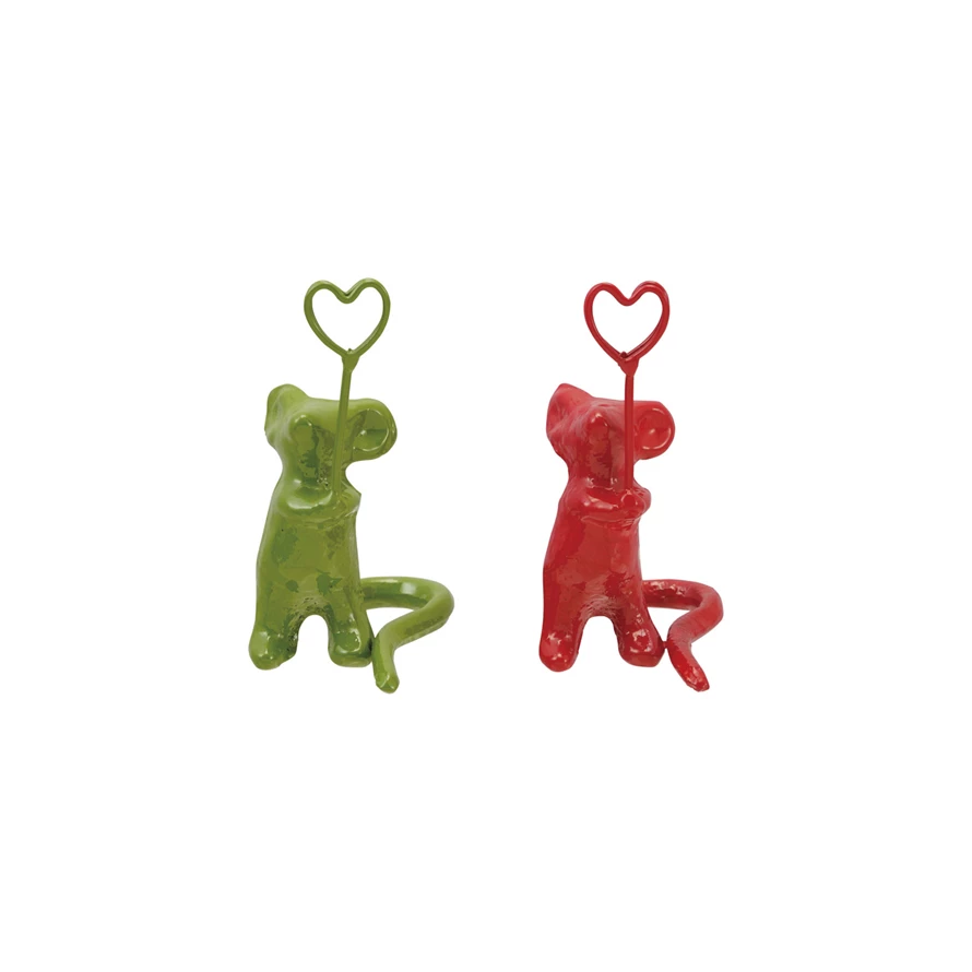 Enameled Cast Iron Mouse with Heart Shaped Place Card/Photo Holder, 2 Colors