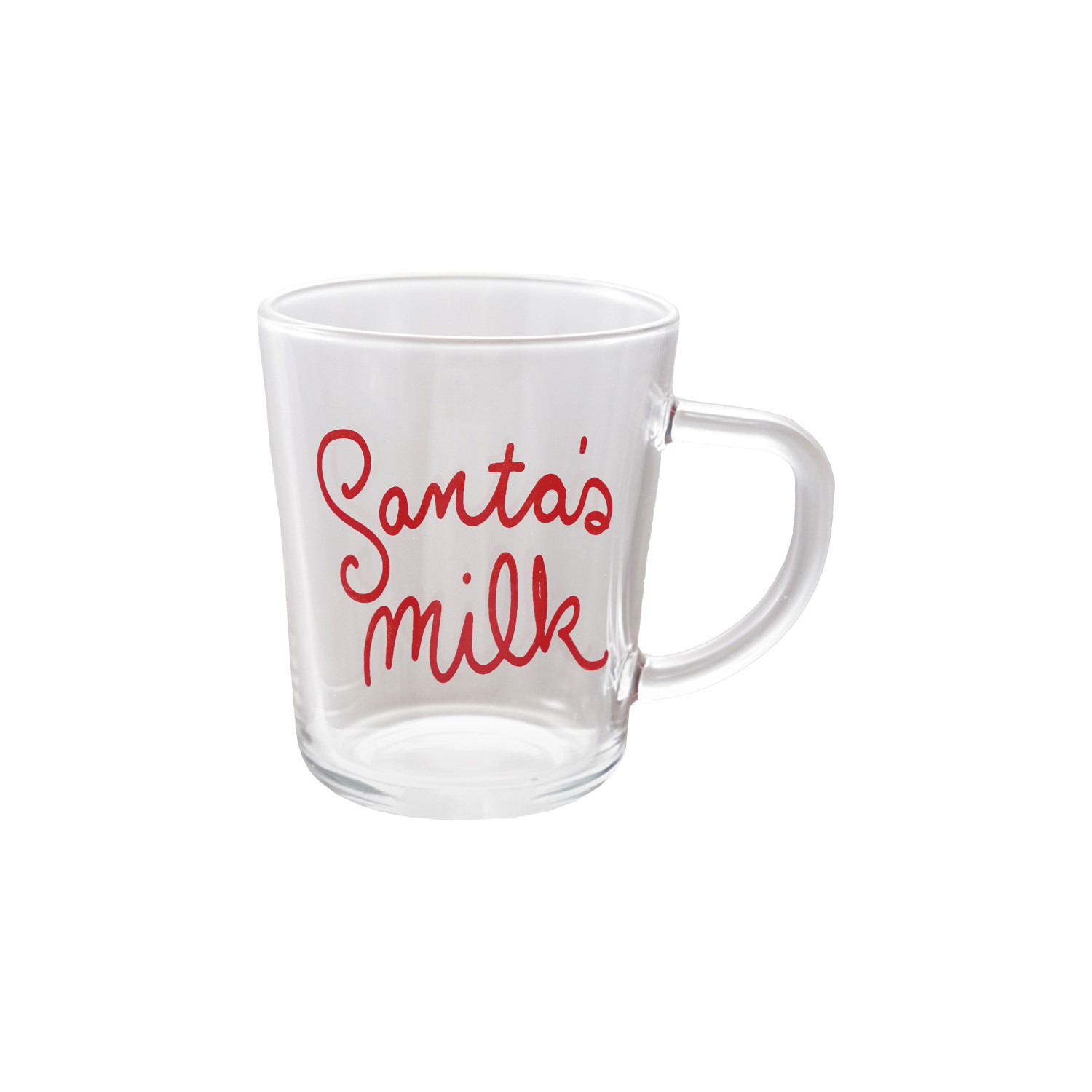Catalog Name: 3-1/2" Round x 4"H 12 oz. Glass Mug "Santa's Milk", Red