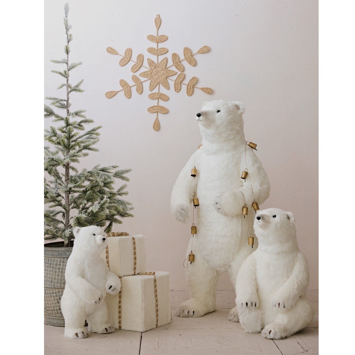 Faux Fur & Foam Sitting Polar Bear, White & Black