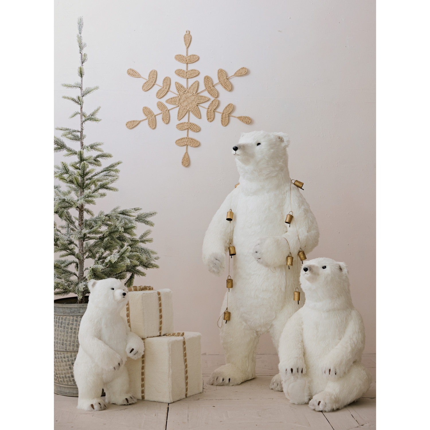 Faux Fur & Foam Standing Polar Bear, White & Black