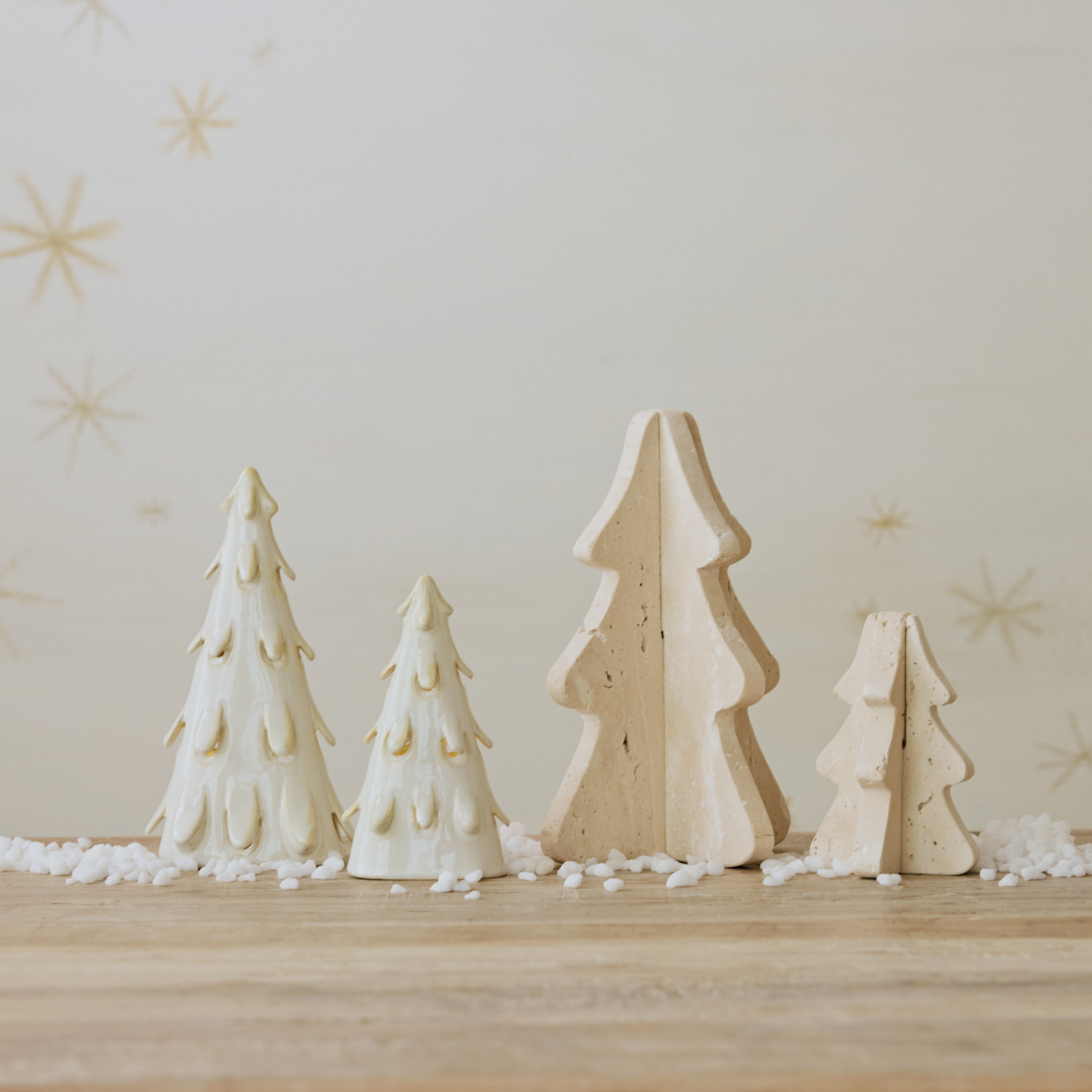 Handmade Stoneware Tree with Cut-Outs & LED Light (Batteries Included) (Each One Will Vary)
