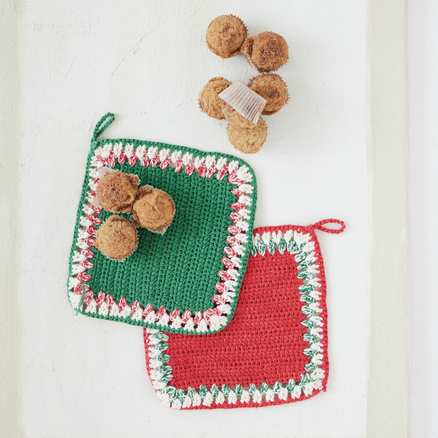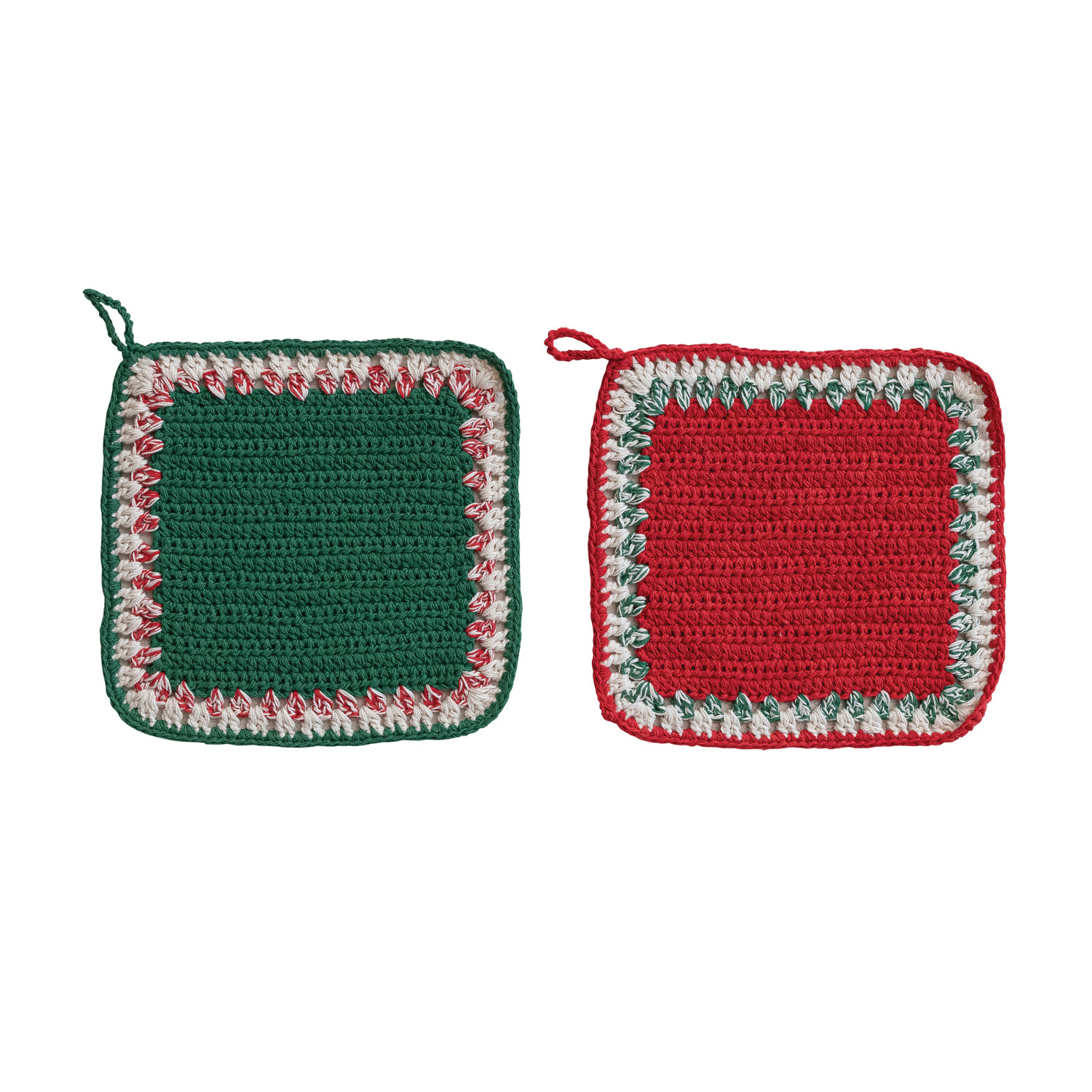 Cotton Crocheted Pot Holder with Contrasting Border, 2 Colors