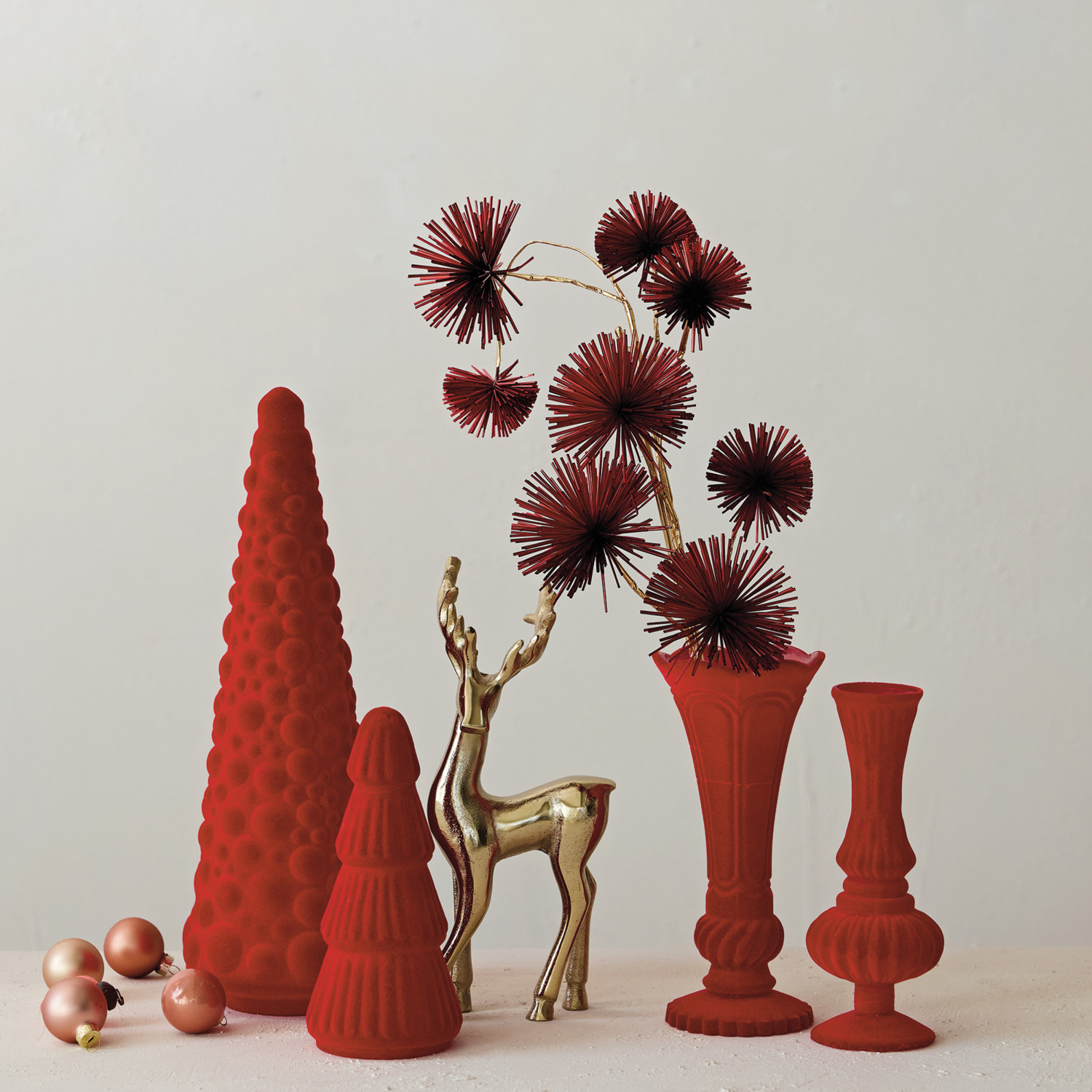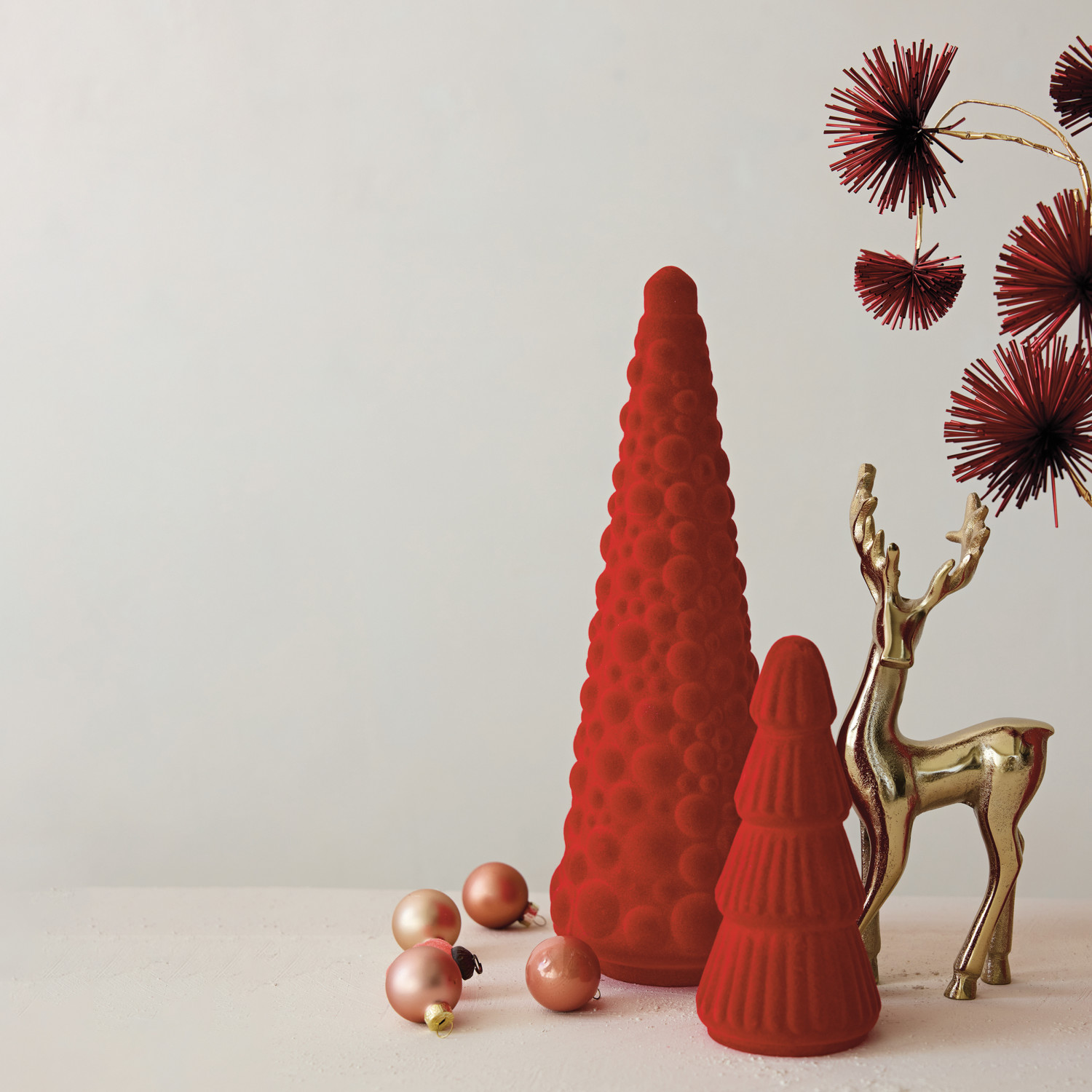 Embossed Flocked Glass Tree, Red