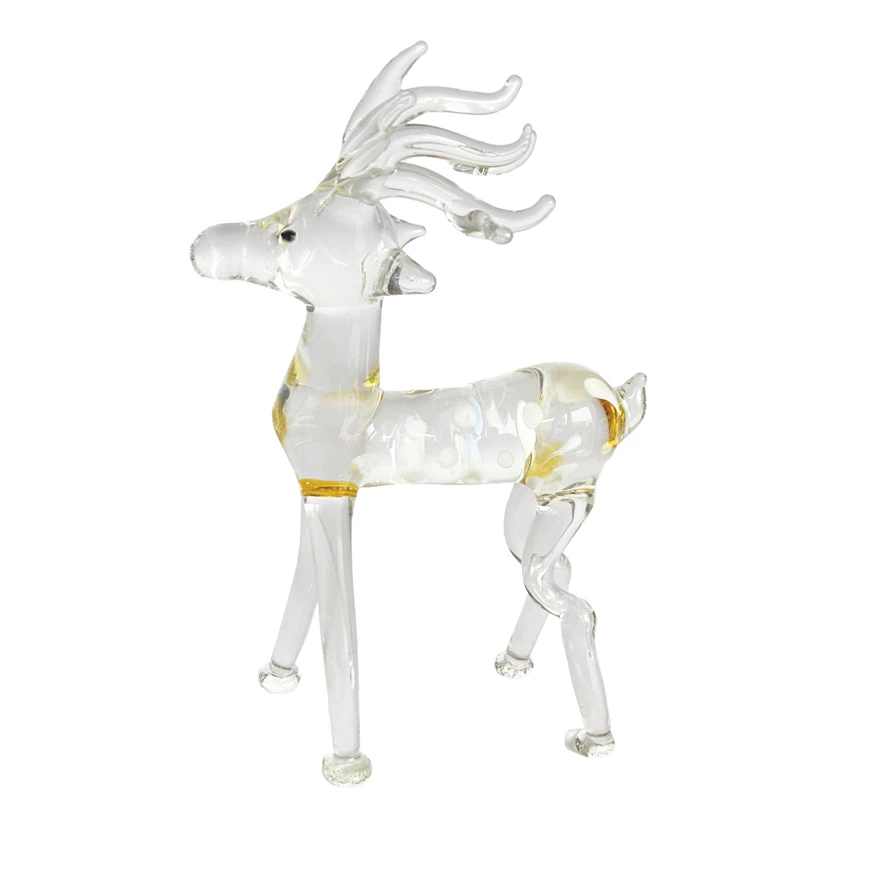 Catalog Name: 3"L x 1-1/2"W x 5"H Hand-Blown Art Glass Deer, Multi Color