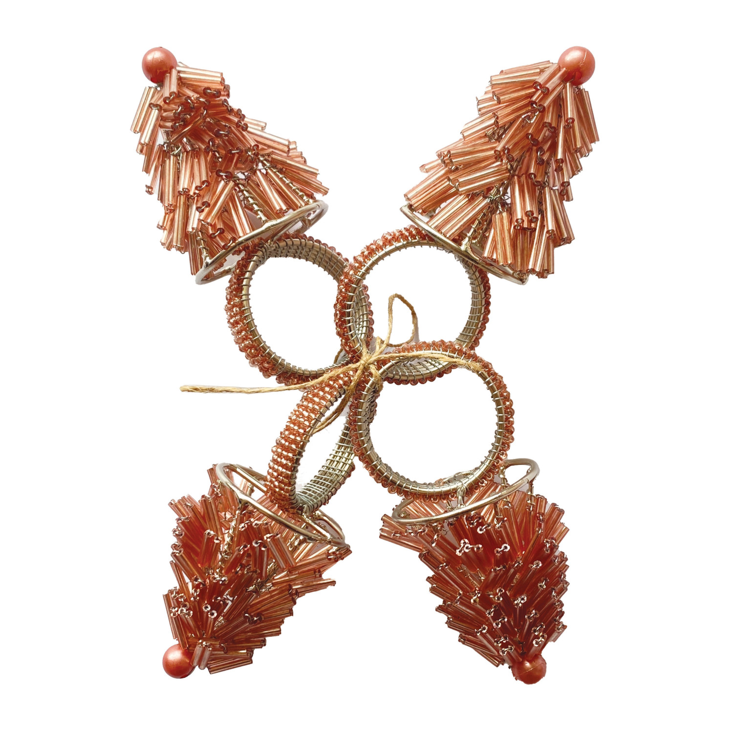 Handmade Metal & Glass Beaded Tree Napkin Rings, Pink, Set of 4 Tied with Jute