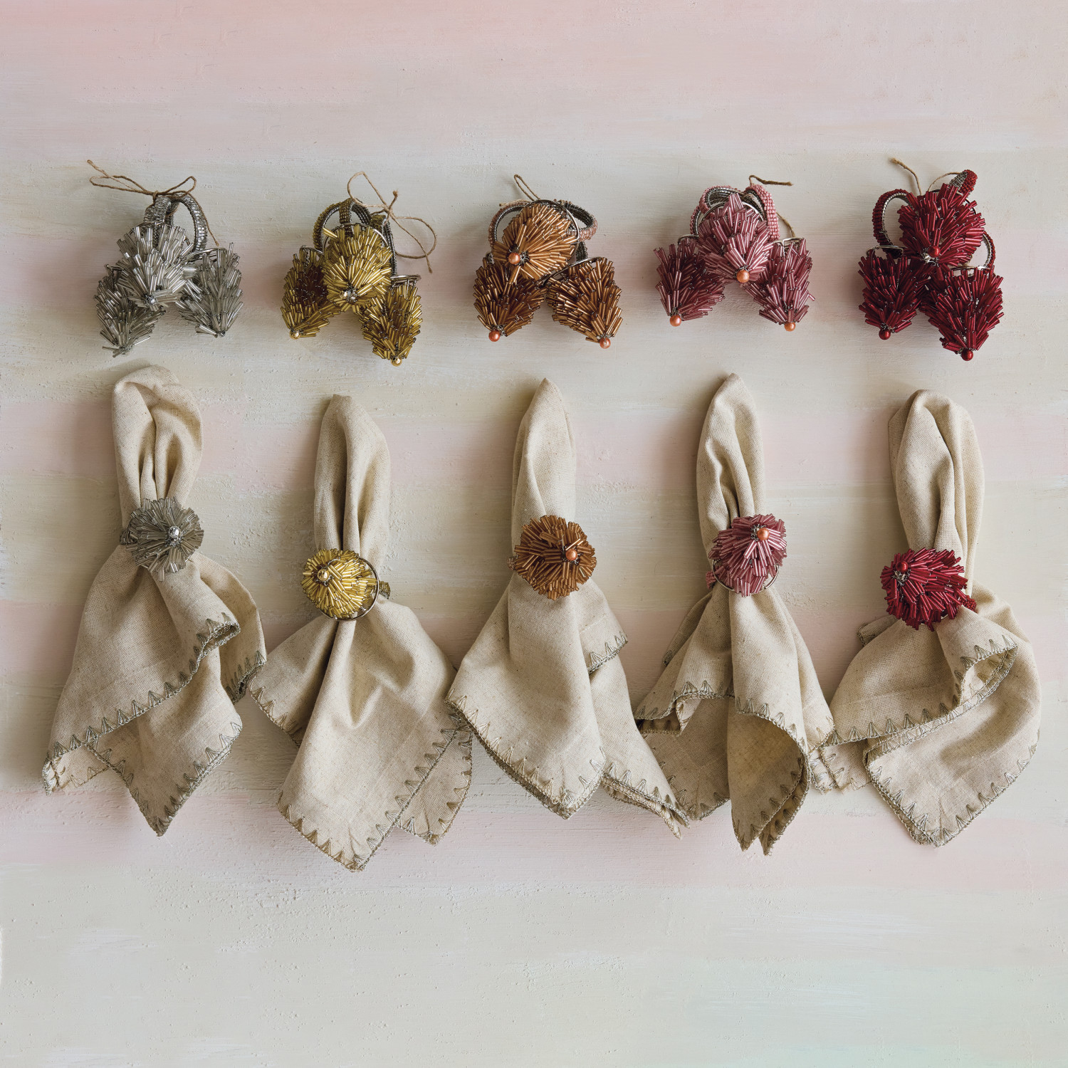 Catalog Name: 2" Round x 4"H Handmade Metal & Glass Beaded Tree Napkin Rings, Pink, Set of 4 Tied w/ Jute