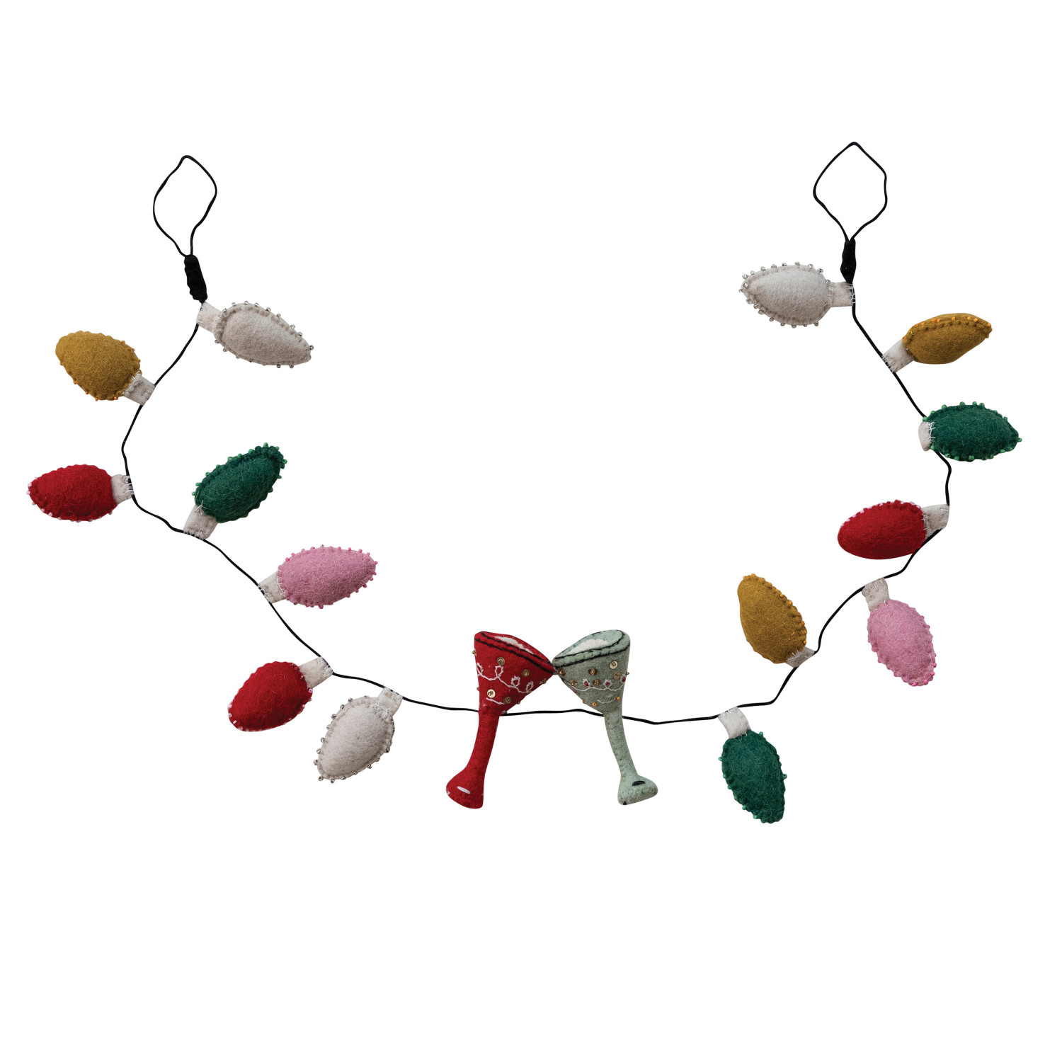 Catalog Name: 36"L x 3-1/2"H Handmade Wool Felt Lights & Cocktails Garland w/ Embroidery & Beads, Multi Color