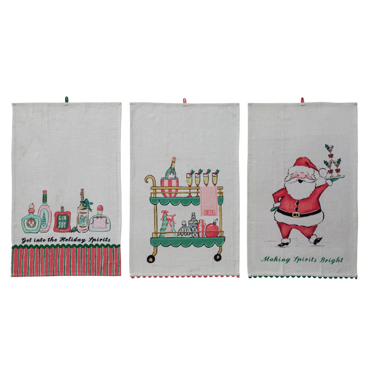 Catalog Name: 28"L x 18"W Cotton Slub Printed Tea Towel w/ Holiday Cocktail Image & Ric Rac Trim, Multi Color, 3 Styles ©