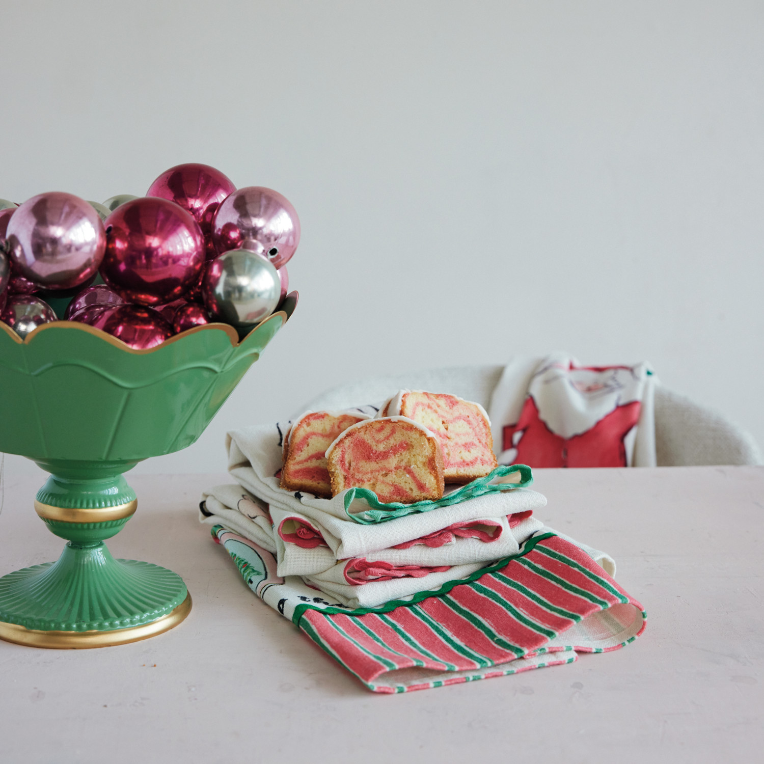 Cotton Slub Printed Tea Towel with Holiday Cocktail Image & Ric Rac Trim, 3 Styles ©