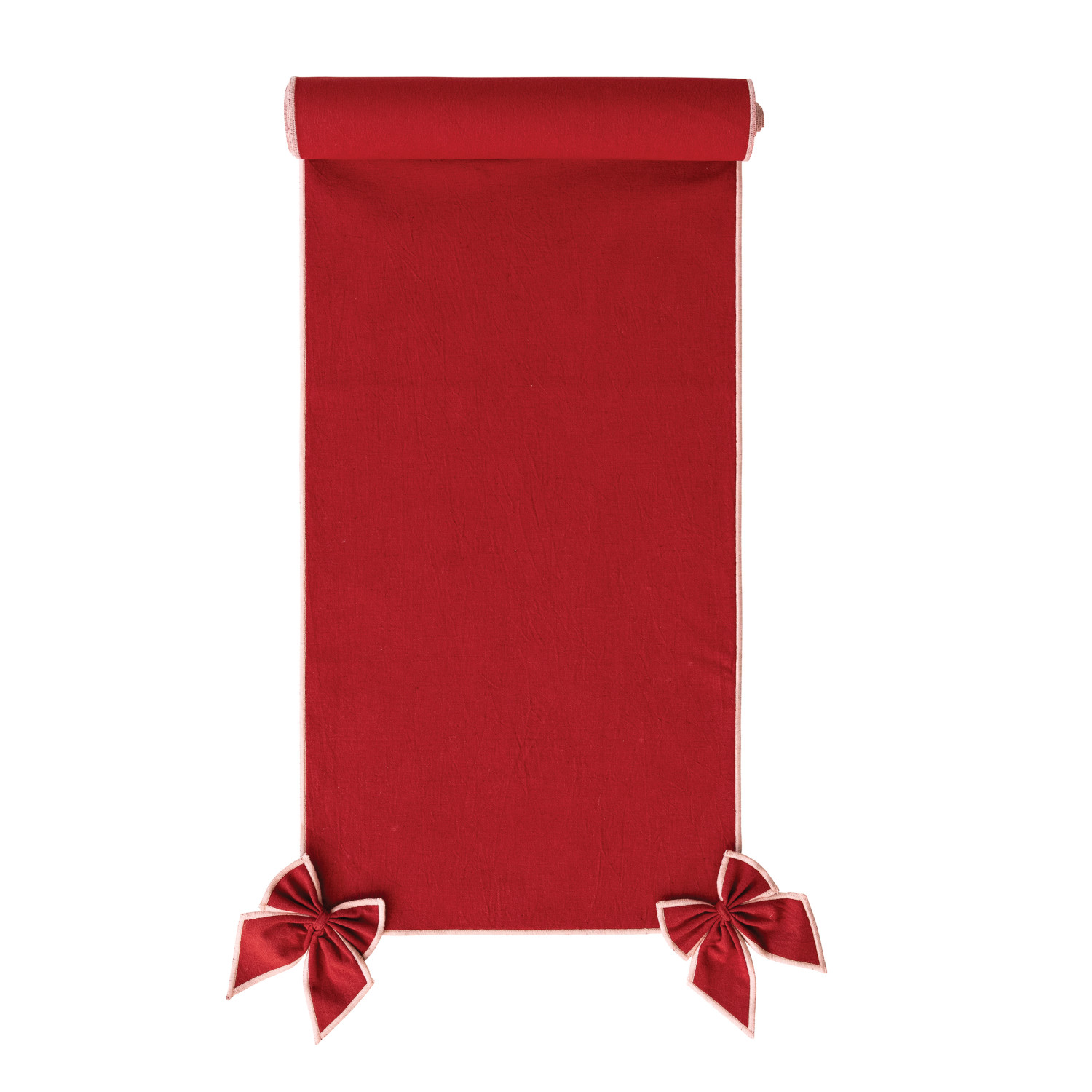 Catalog Name: 72"L x 14"W Cotton & Linen Table Runner w/ Detachable Bows & Pink Stitched Edge, Red