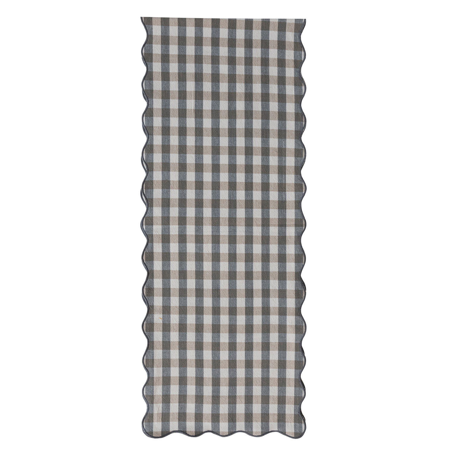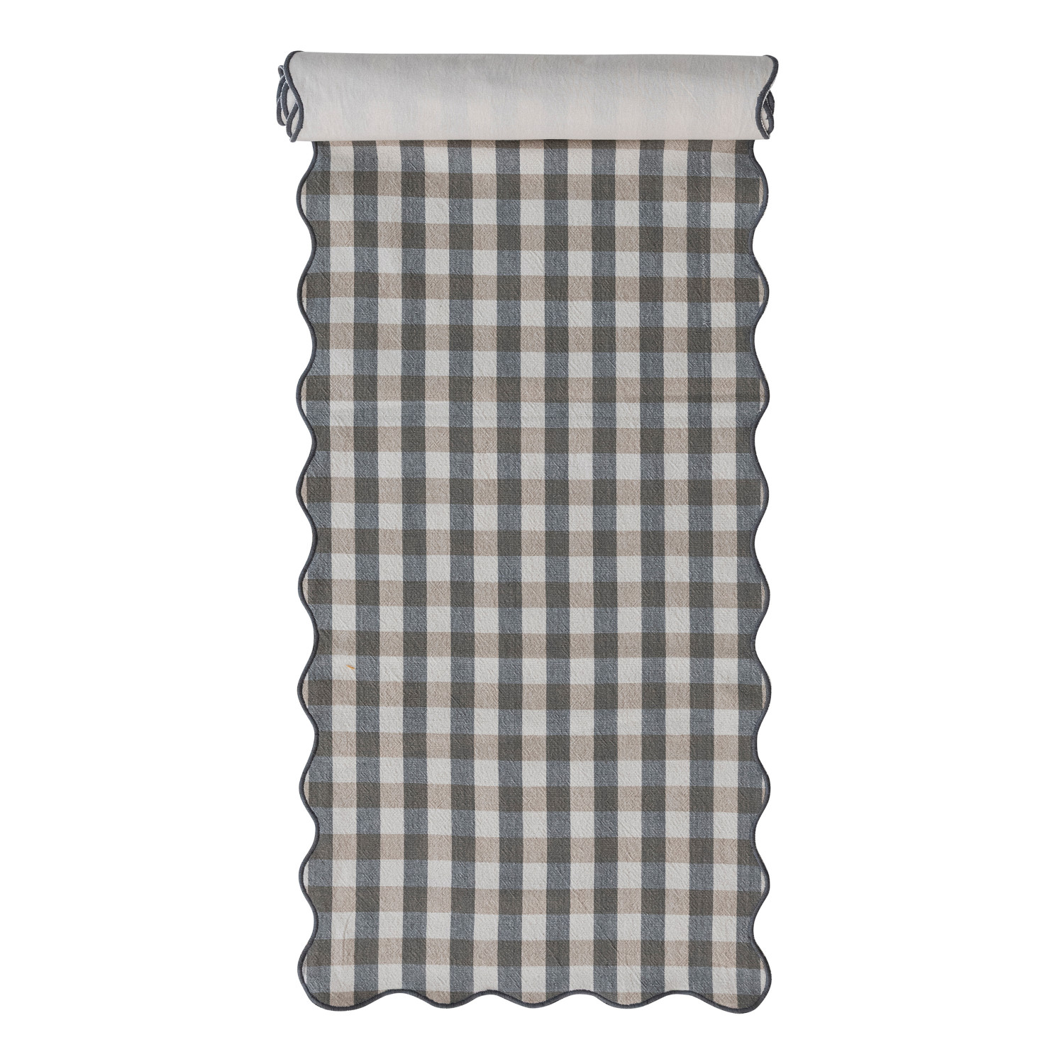 Catalog Name: 72"L x 14"W Cotton Scalloped Table Runner w/ Check Pattern & Stitched Edge, Grey, Beige & Cream Color, Roll Tied w/ Jute