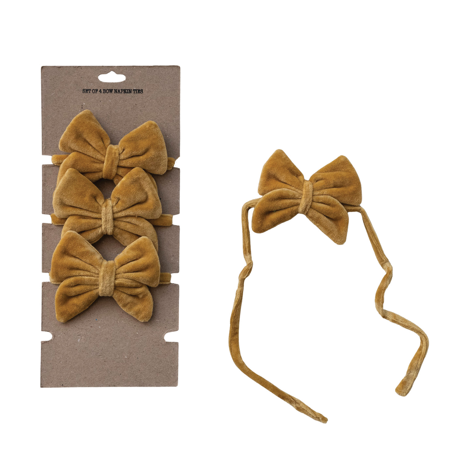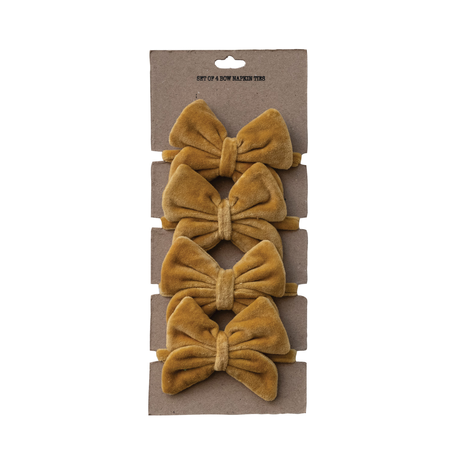 Cotton Velvet Bow Napkin Ties, Mustard Color, Set of 4 on Card