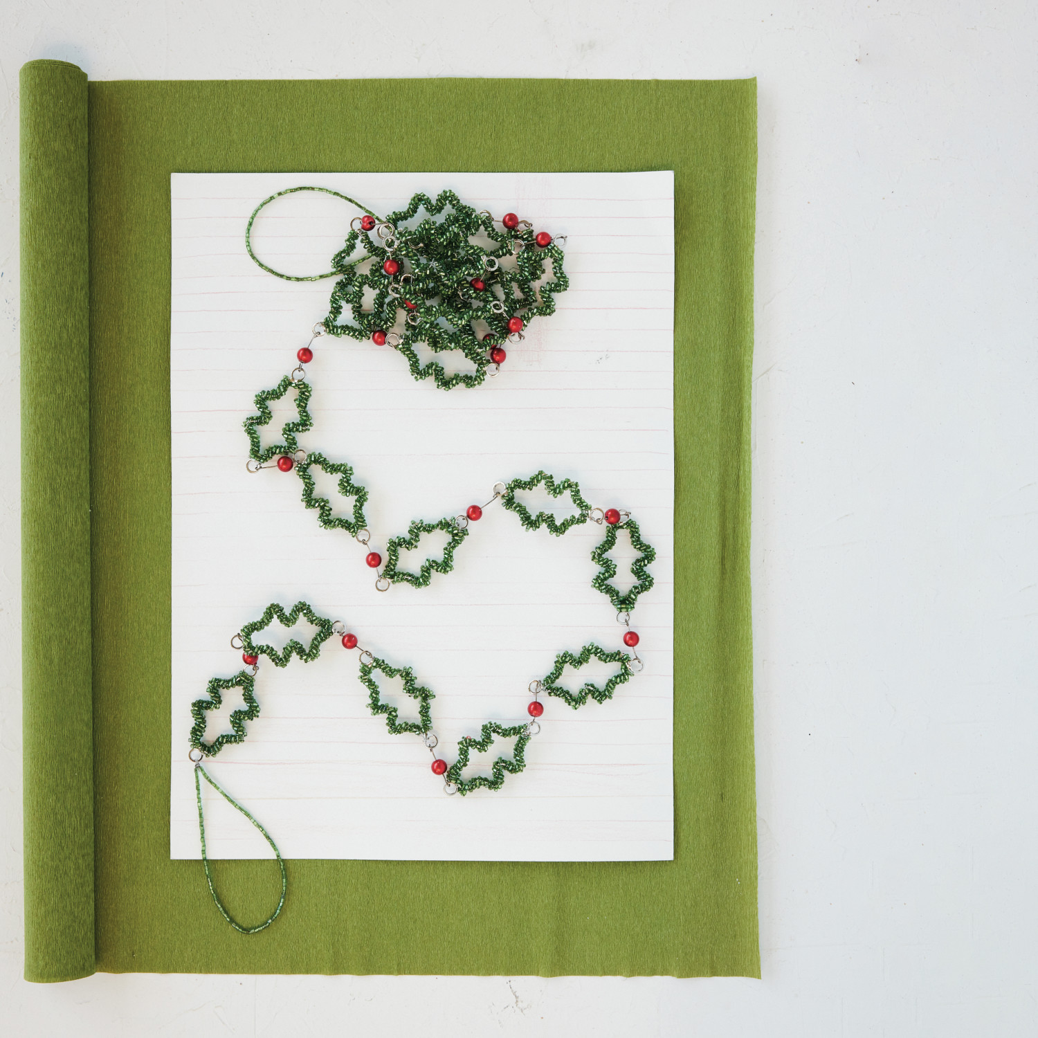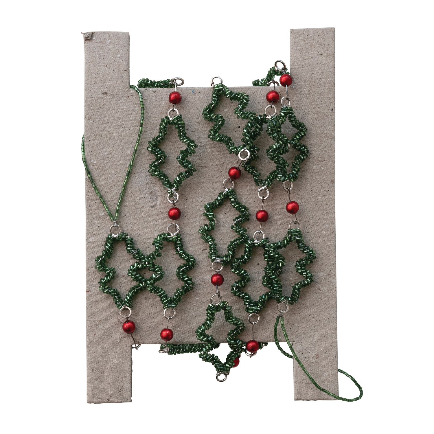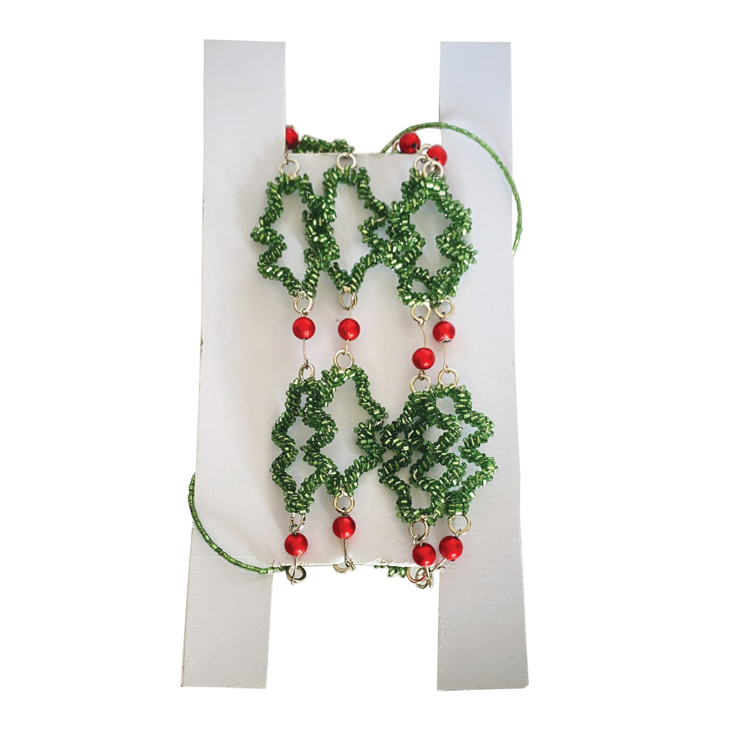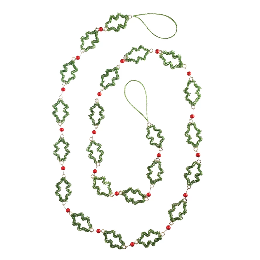 Metal & Glass Beaded Holly & Berries Garland, Green & Red