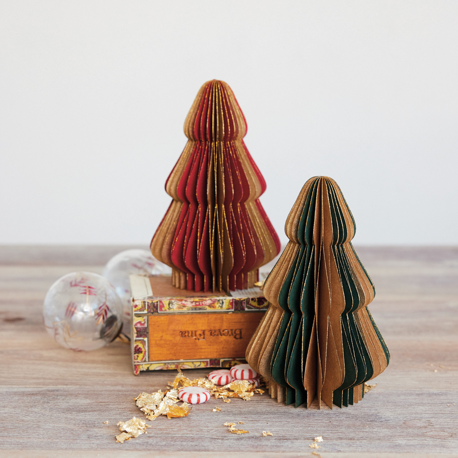 Handmade Recycled Paper Folding Honeycomb Tree with Gold Glitter Edges, 2 Colors