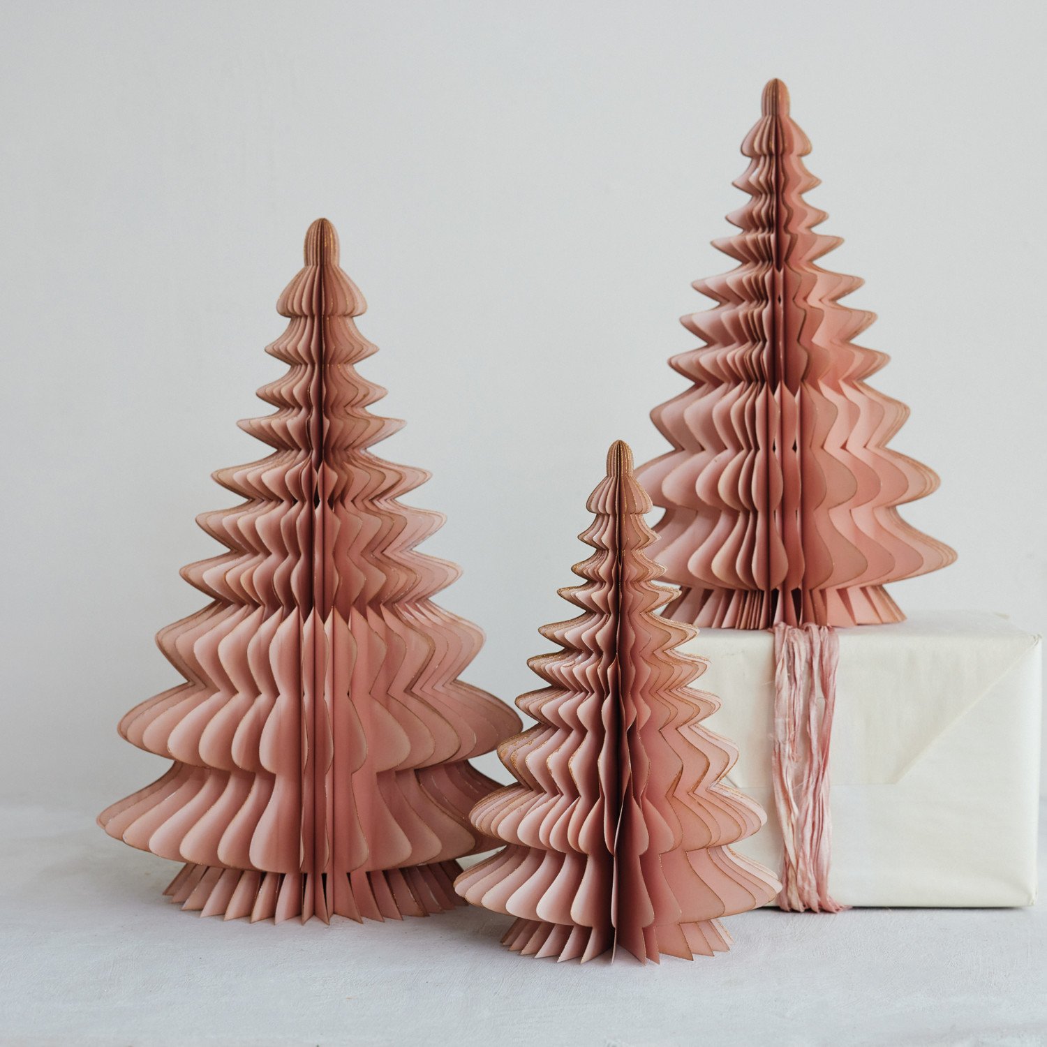 Handmade Recycled Paper Folding Honeycomb Tree with Gold Glitter Edges, Blush Color