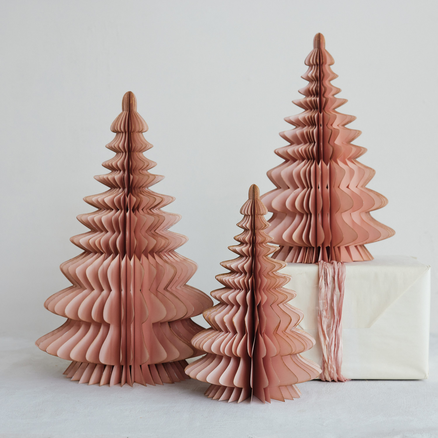Handmade Recycled Paper Folding Honeycomb Tree with Gold Glitter Edges, Blush Color