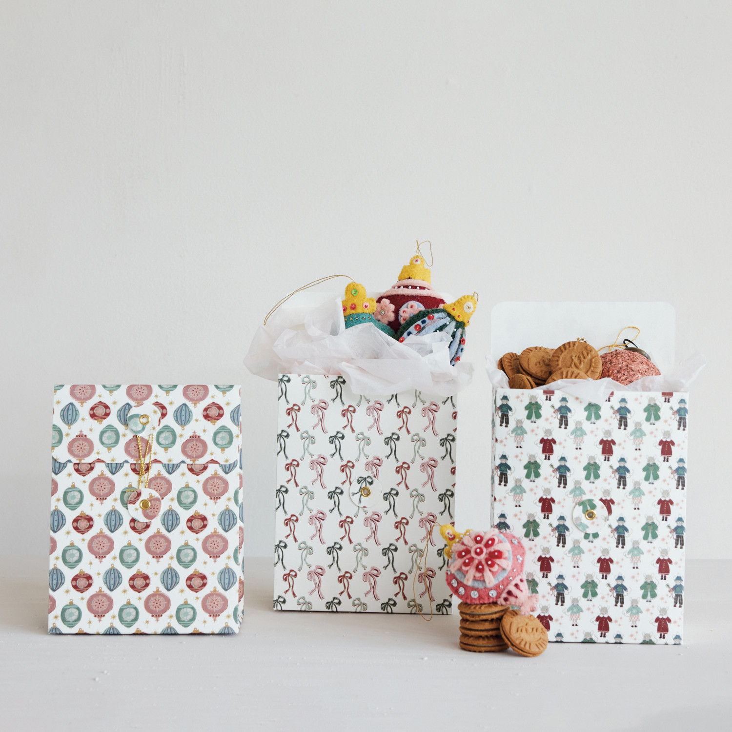 Handmade Recycled Paper Gift Bags with Holiday Patterns & Closures, 3 Styles ©
