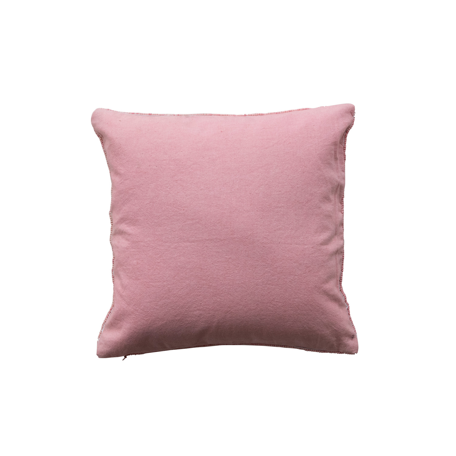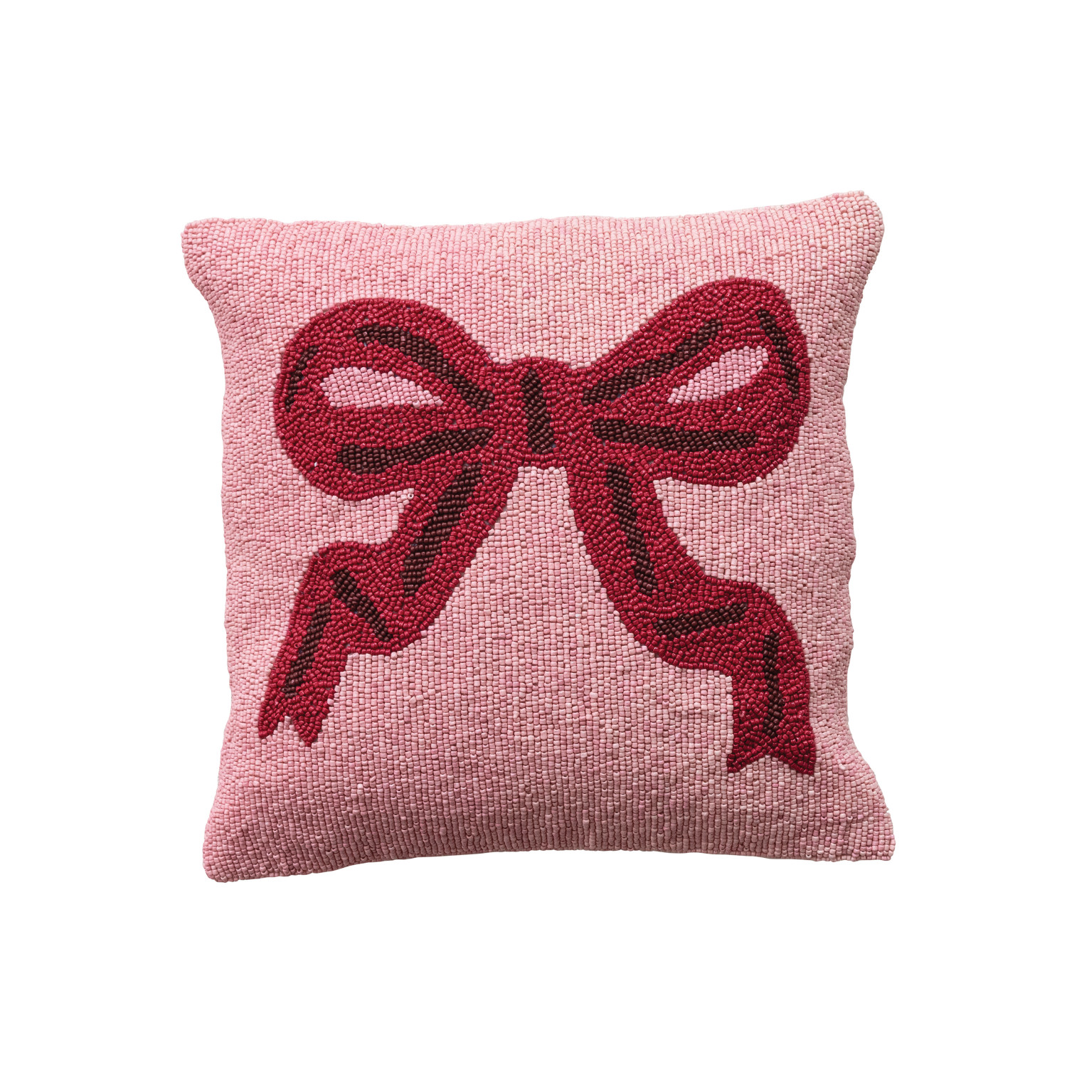 Catalog Name: 14" Square Glass Beaded Fabric Pillow w/ Bow, Pink & Red