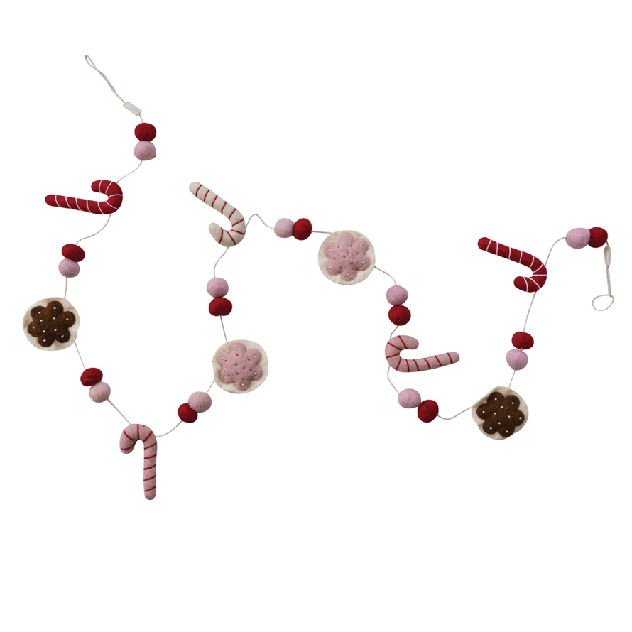 Handmade Wool Felt Candy Cane & Cookie Garland with Embroidery