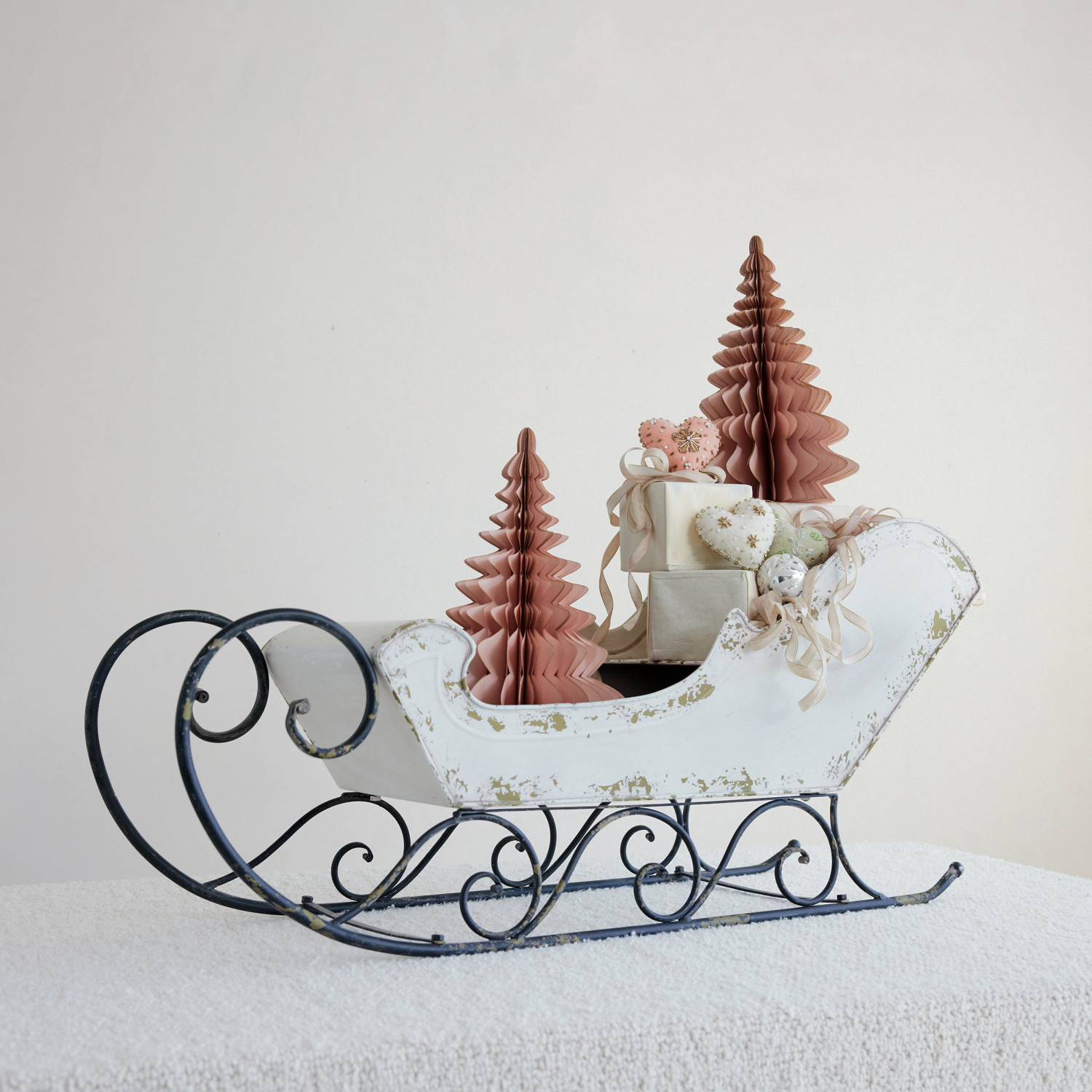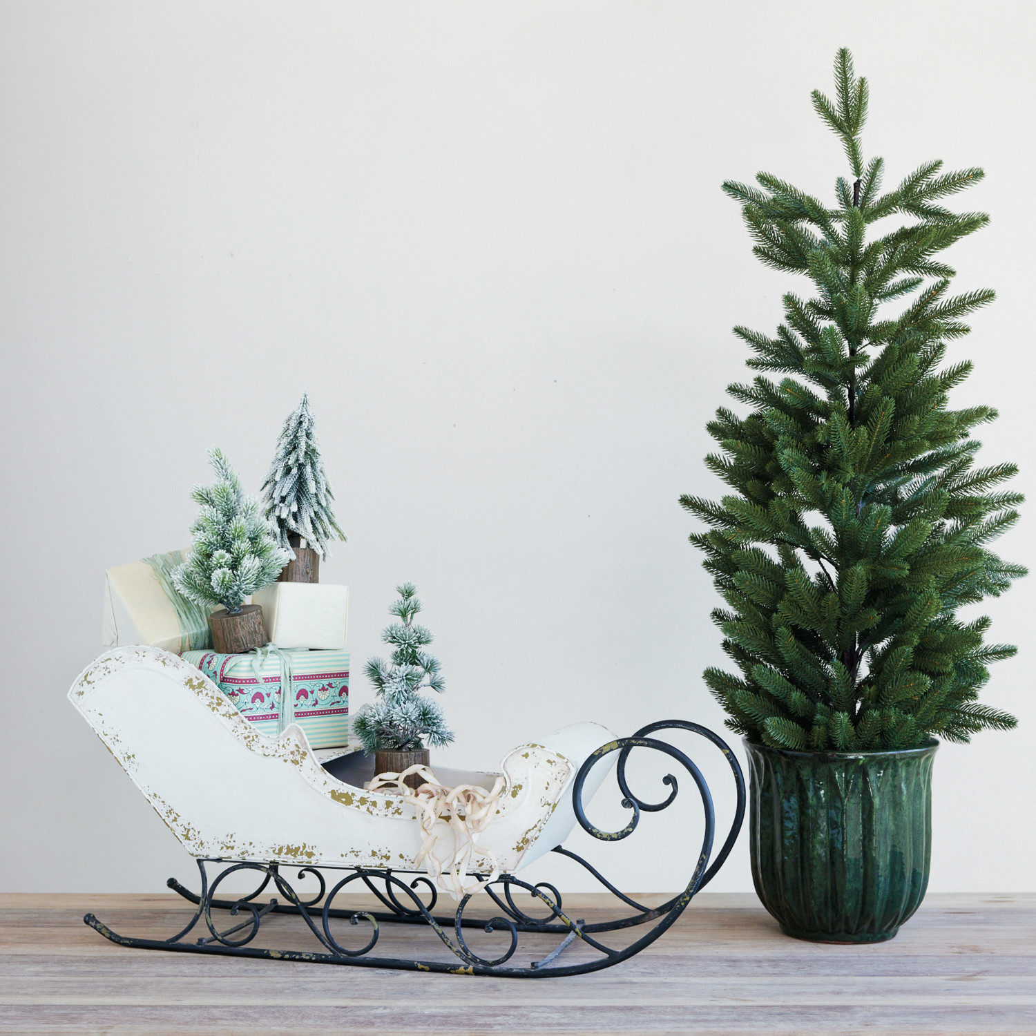 Catalog Name: 35"L x 12"W x 16-1/2"H Metal Sleigh, Distressed Finish, Antique White & Black