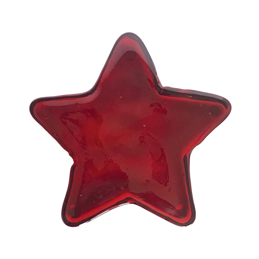 Catalog Name: 6-1/4"L x 6"H Pressed Glass Star Décor, Red