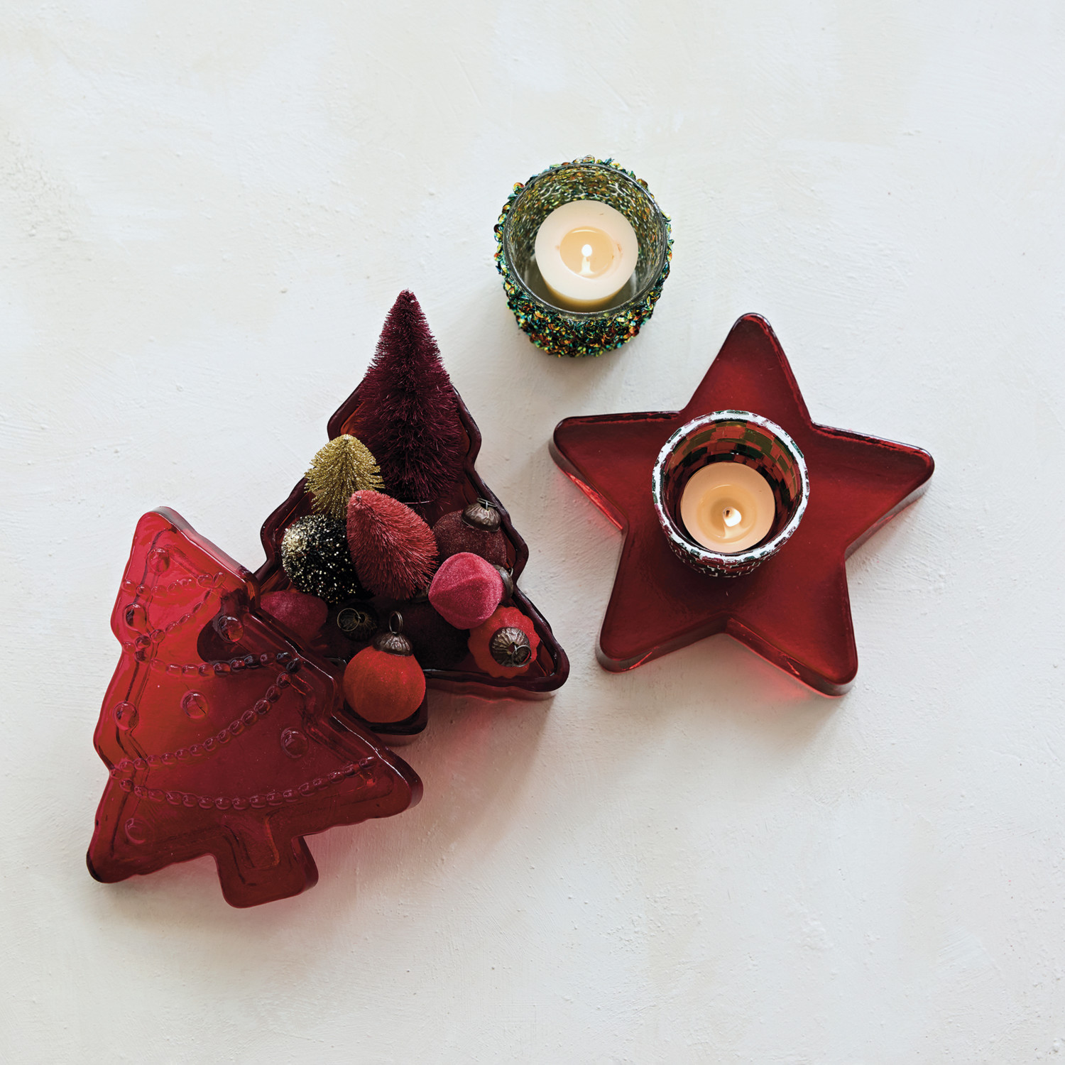 Pressed Glass Star Decor, Red