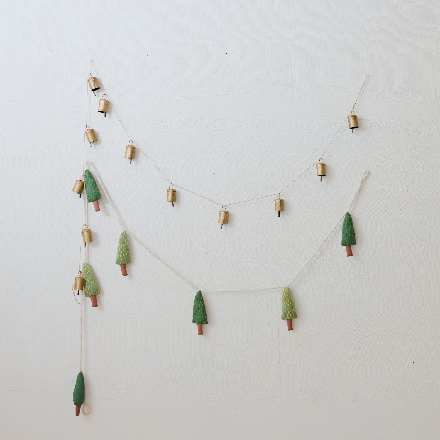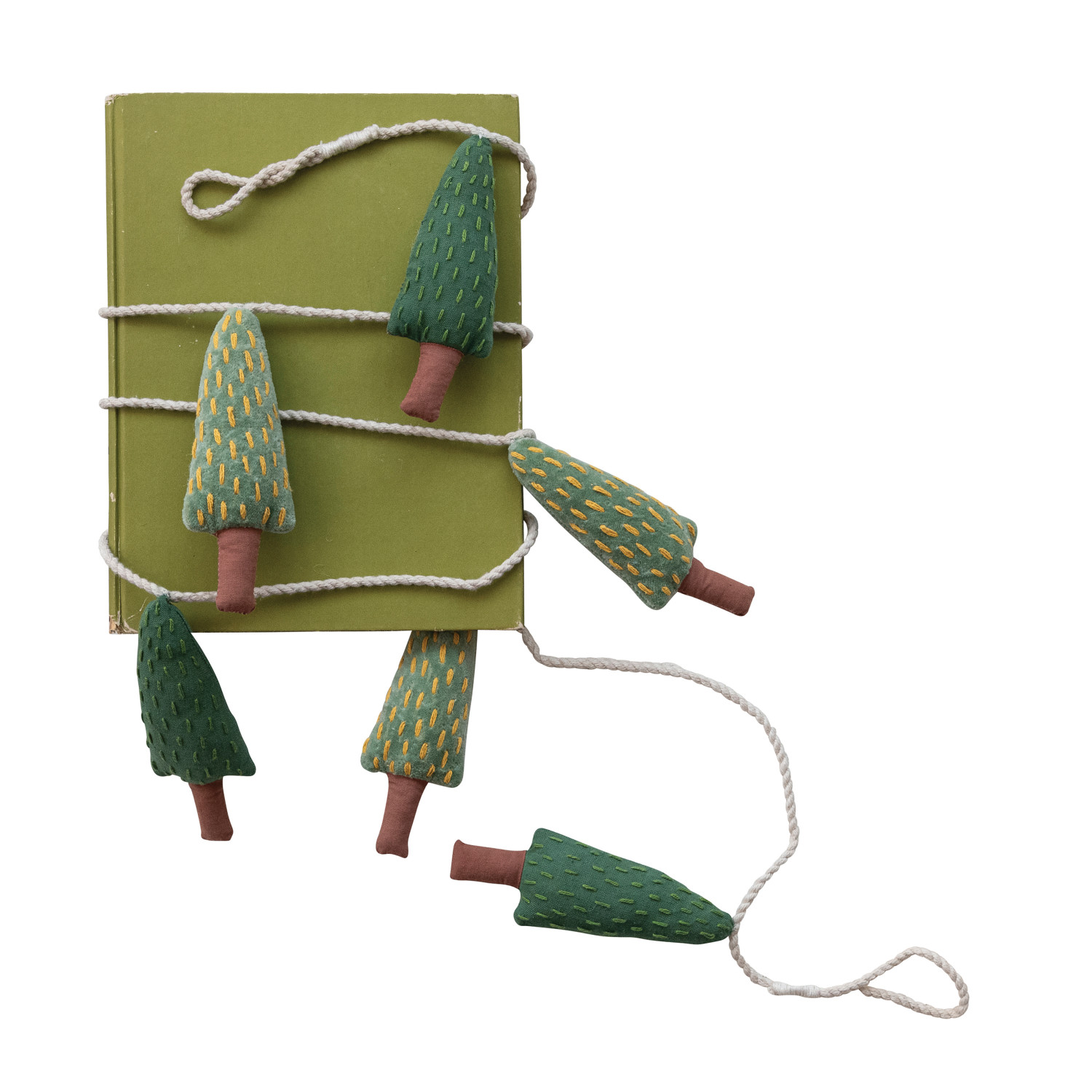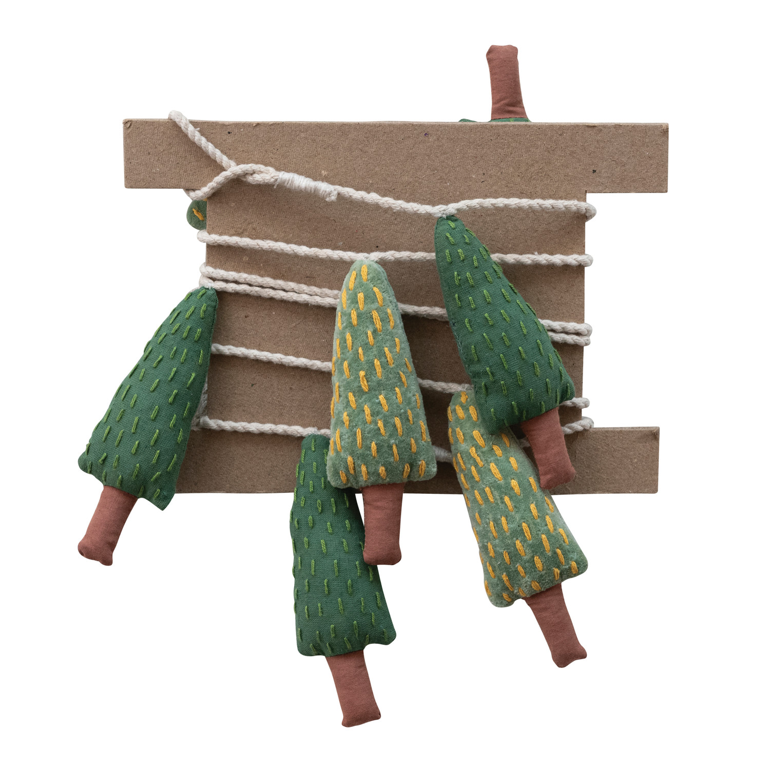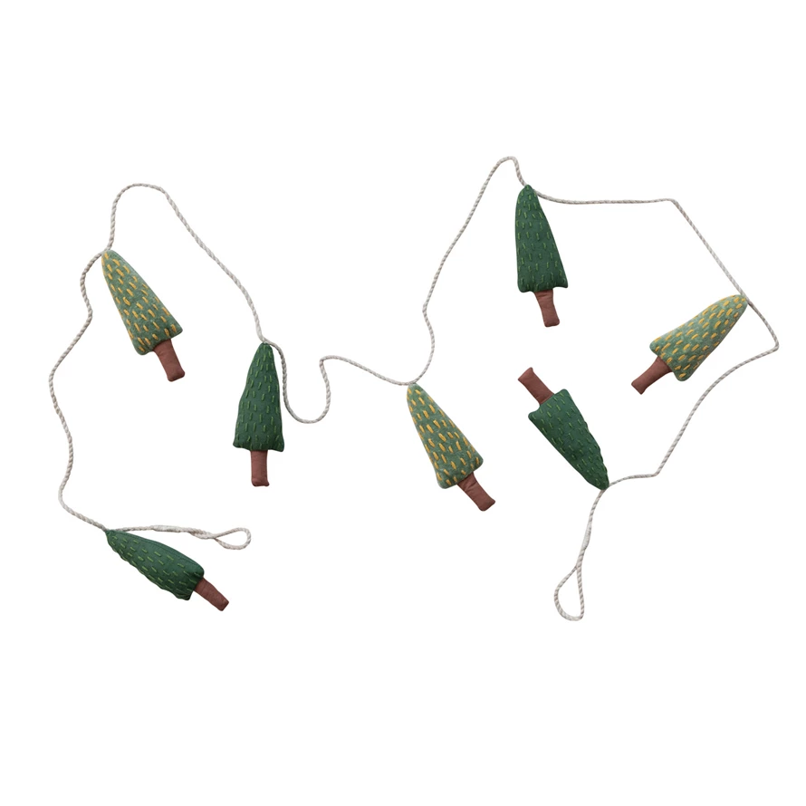 Handmade Cotton Velvet Tree Garland with Embroidery, Green, Brown & Natural