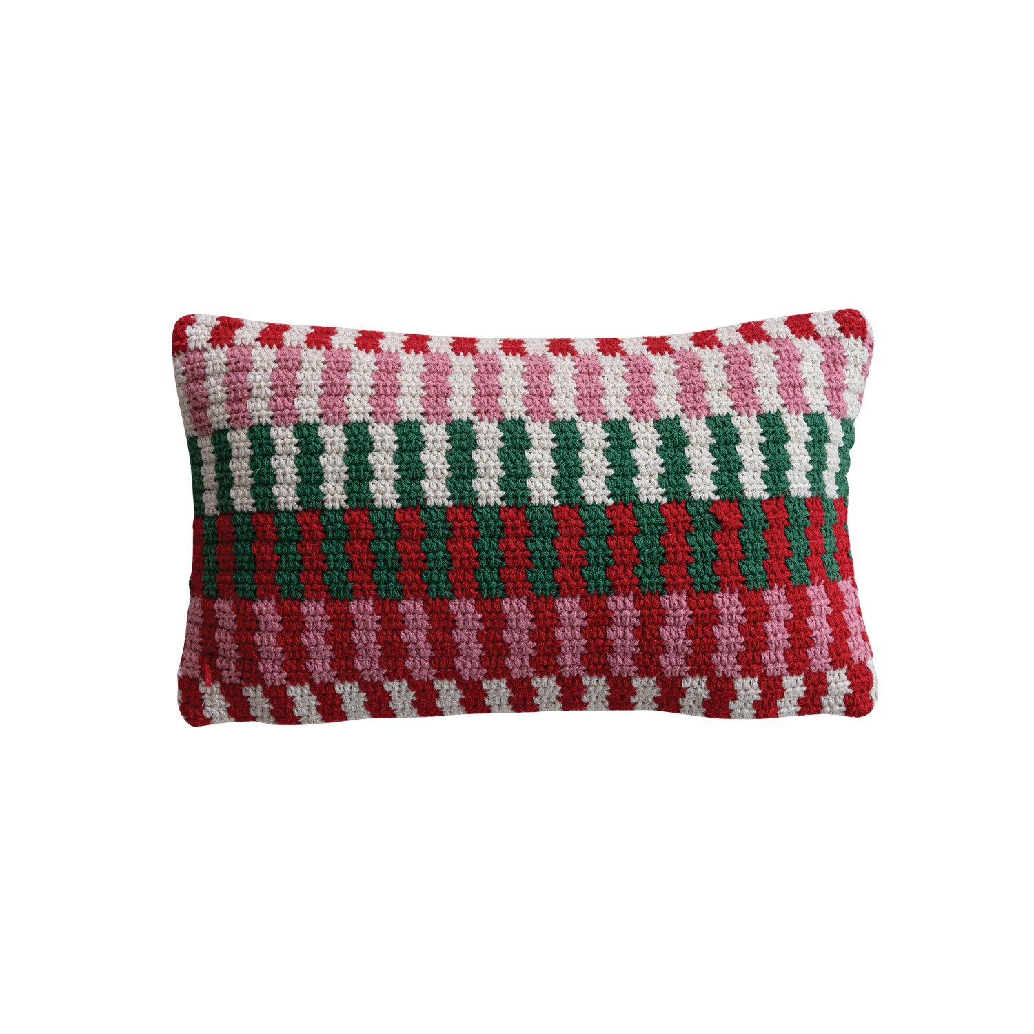 Catalog Name: 14"L x 9"H Cotton Crocheted Lumbar Pillow w/ Pattern, Multi Color