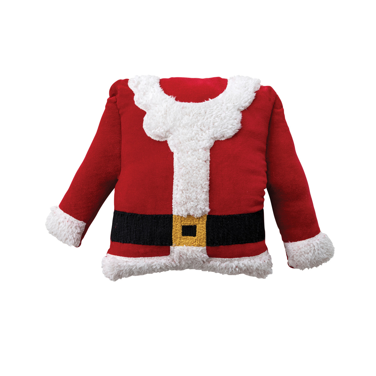 Catalog Name: 18"L x 13"H Woven Cotton Velvet Santa Coat Shaped Pillow w/ Faux Sherpa Trim & Embroidery, Multi Color