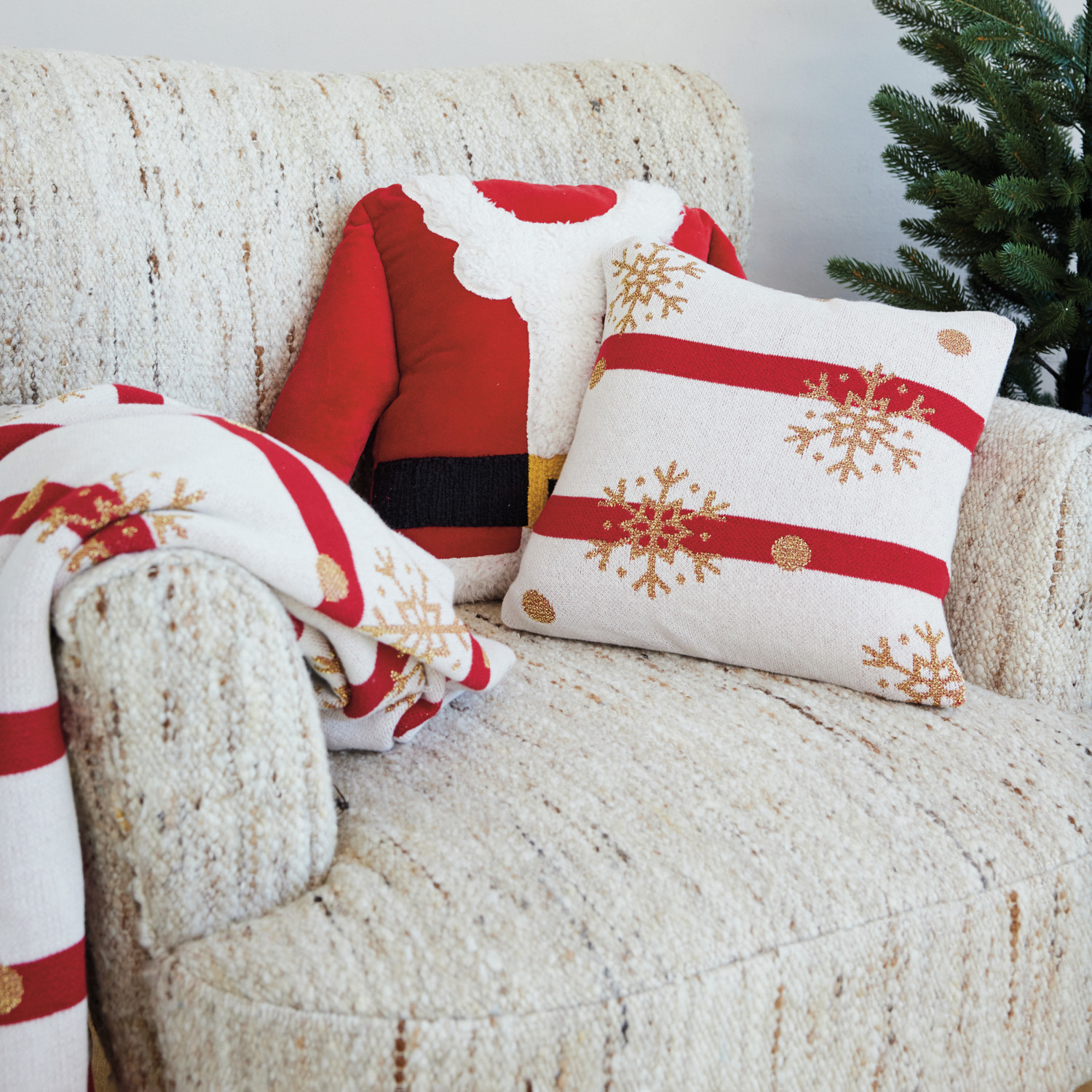 Woven Cotton Velvet Santa Coat Shaped Pillow with Faux Sherpa Trim & Embroidery