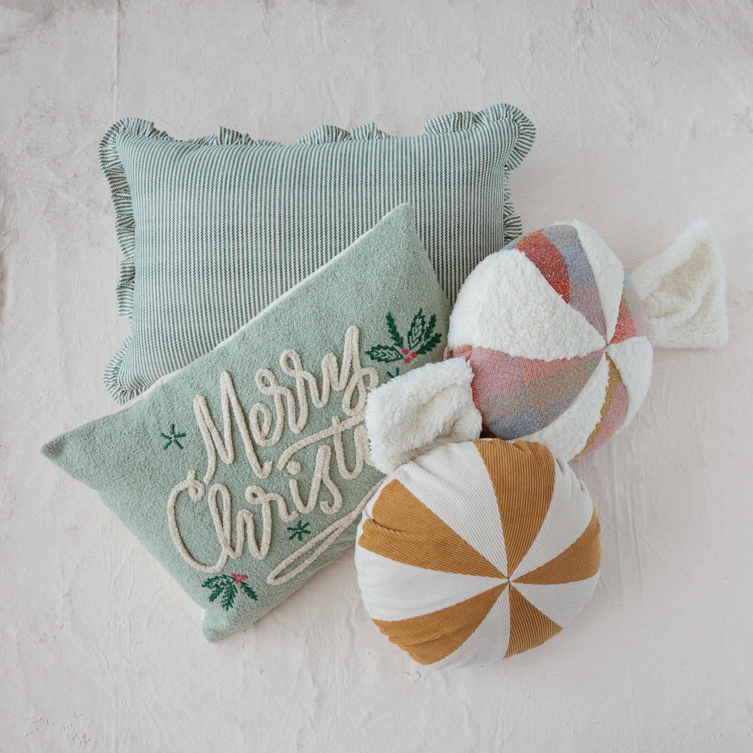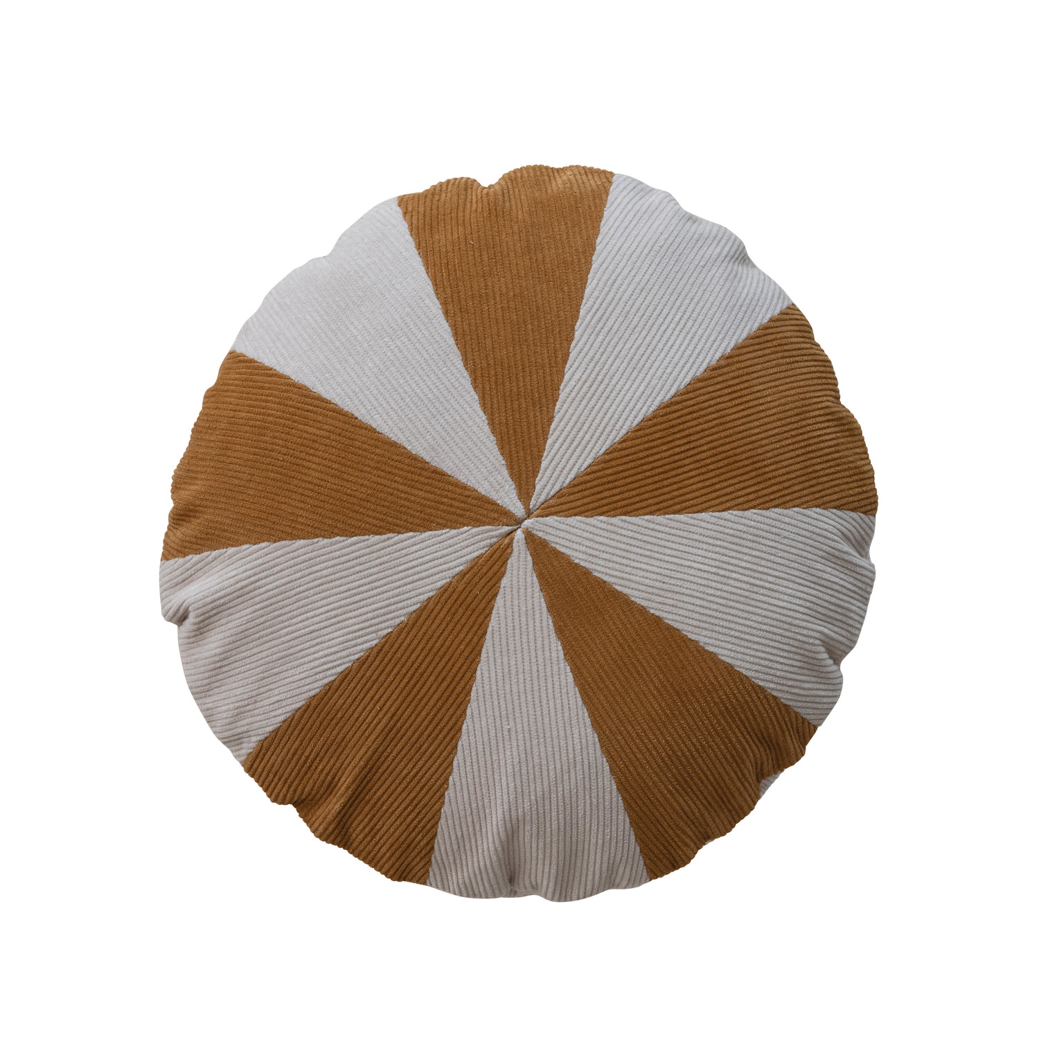 Catalog Name: 16" Round Woven Cotton Corduroy Candy Striped Pillow, Natural & Mustard Color