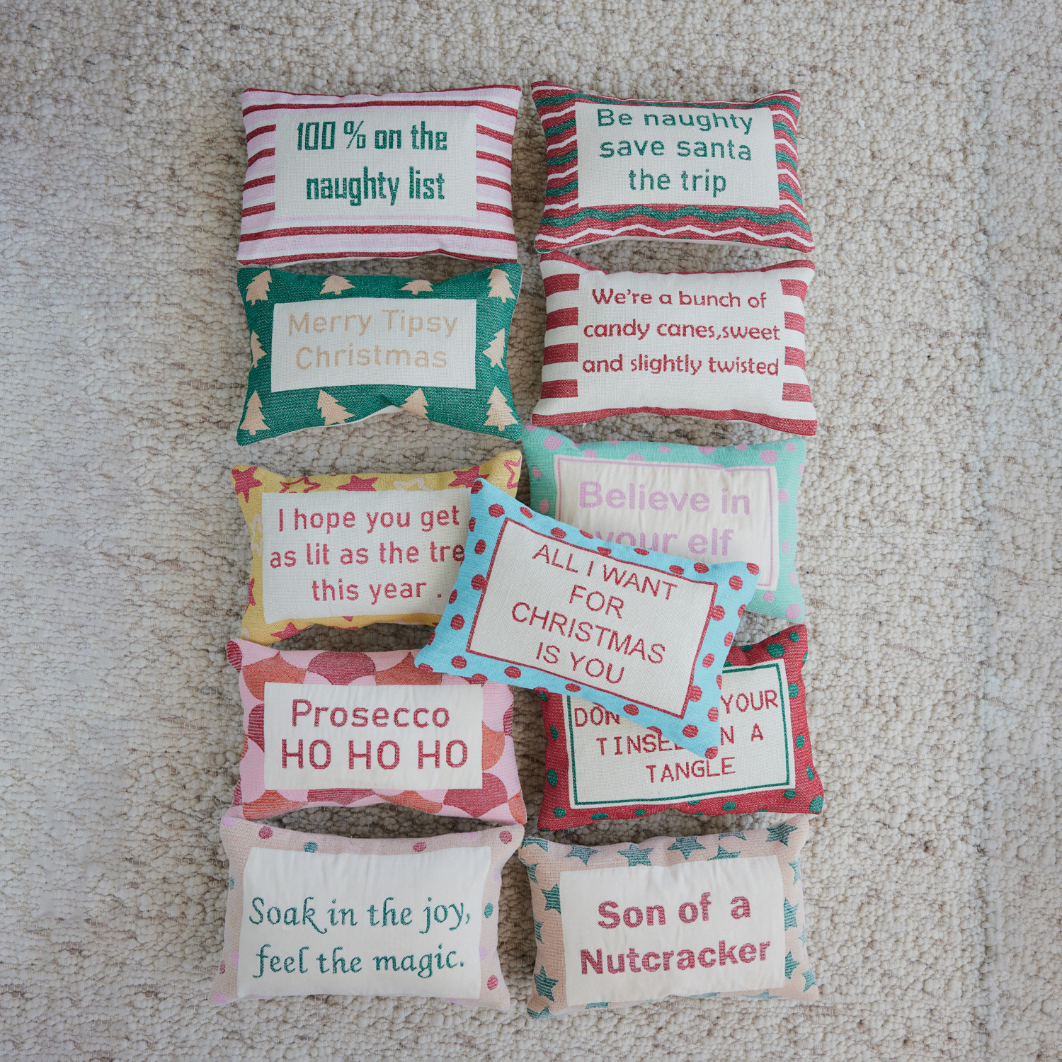 Cotton Embroidered Lumbar Pillow with Tree Pattern "Merry Tipsy Christmas"