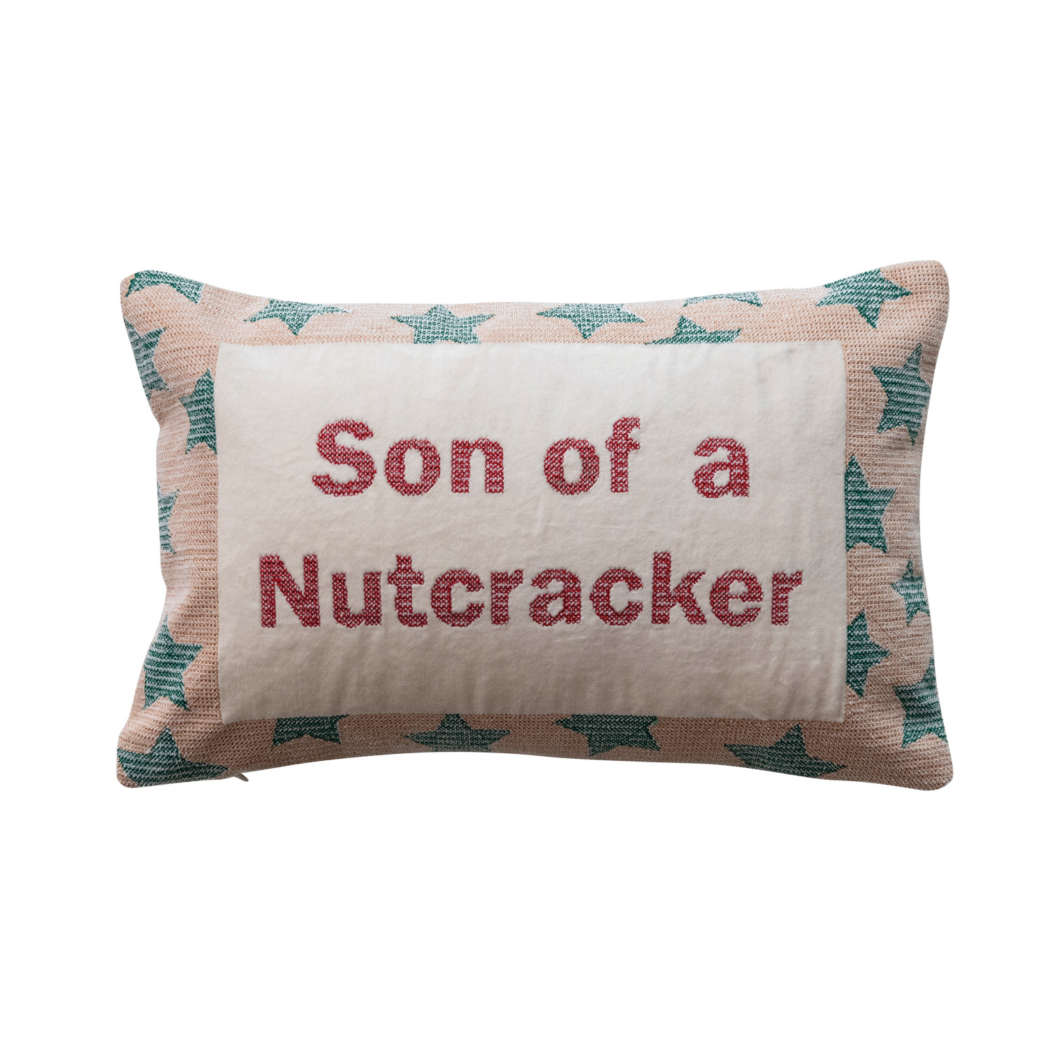 Catalog Name: 14"L x 9"H Cotton & Velvet Embroidered Lumbar Pillow w/ Star Pattern "Son Of A Nutcracker", Multi Color