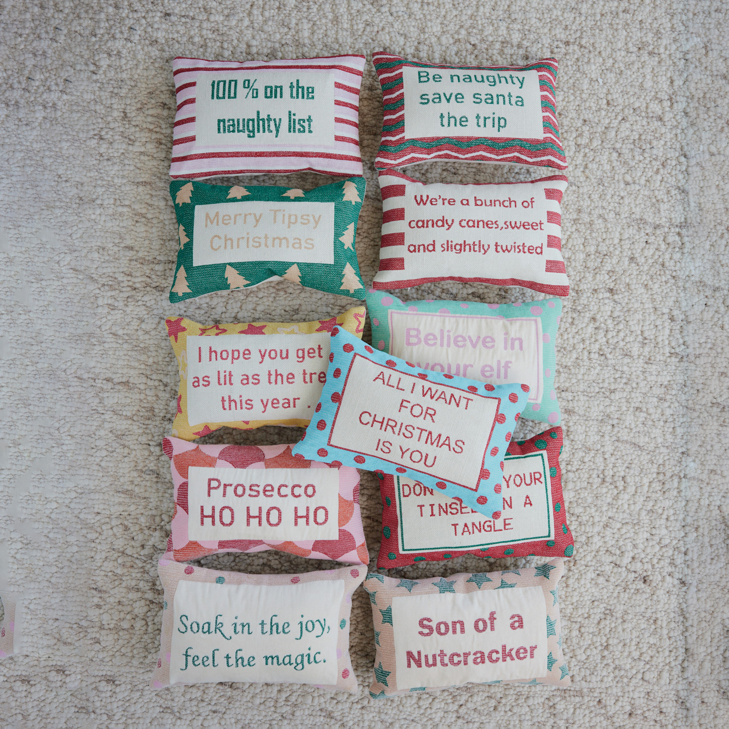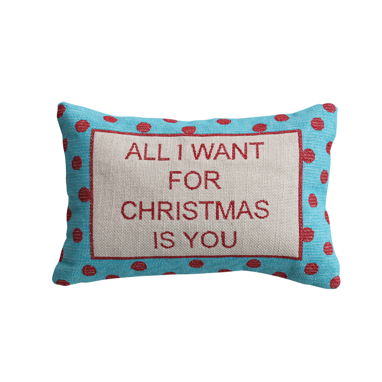 Cotton Embroidered Lumbar Pillow with Polka Dot Pattern "All I Want For Christmas..."