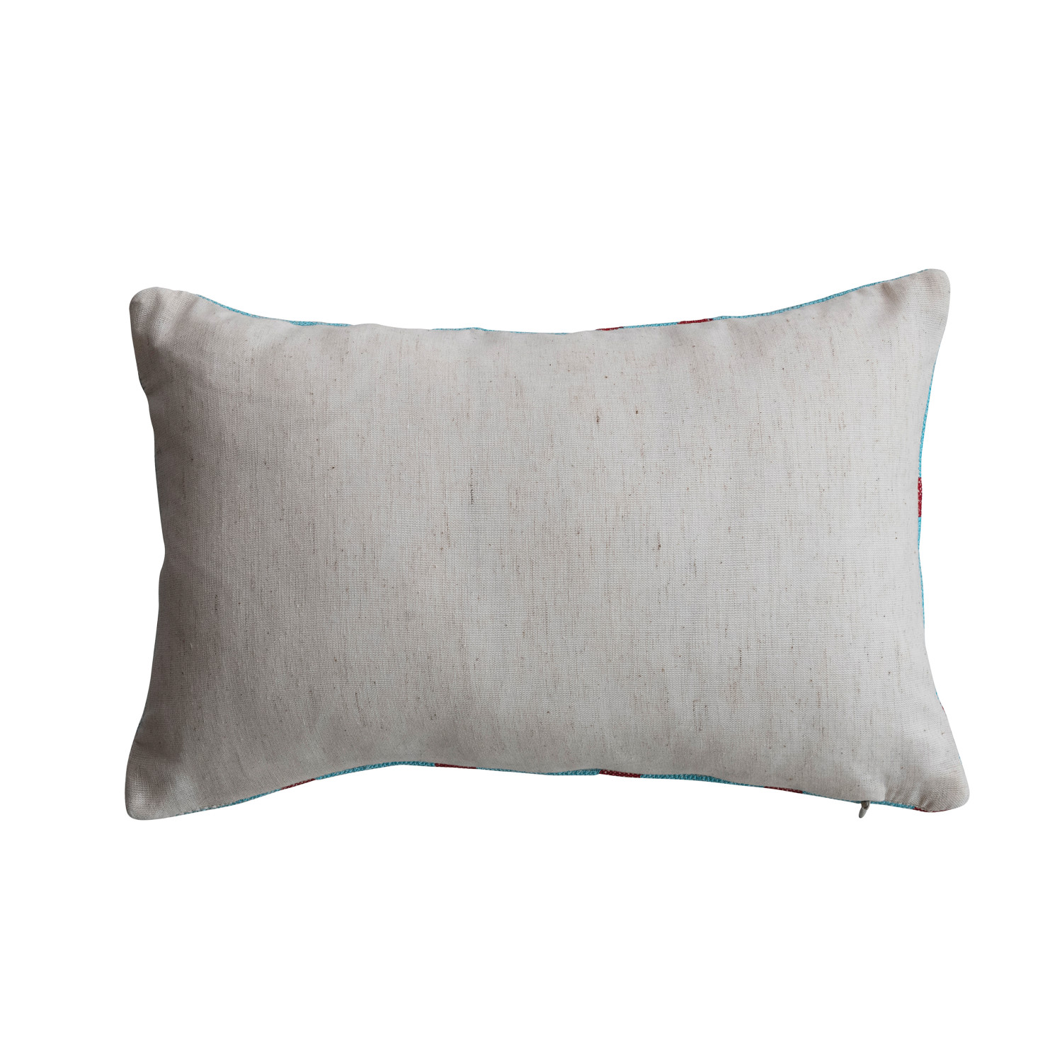 Catalog Name: 14"L x 9"H Cotton Embroidered Lumbar Pillow w/ Polka Dot Pattern "All I Want For Christmas...", Blue, Red & Natural