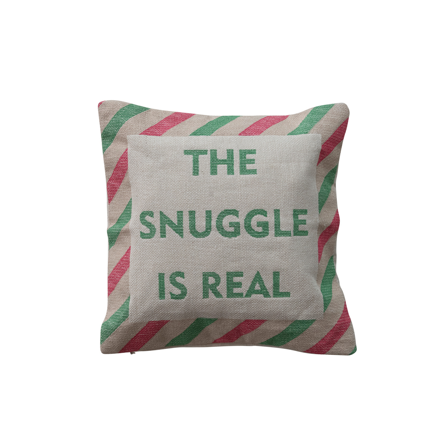 Catalog Name: 14" Square Cotton Embroidered Pillow w/ Stripes "The Snuggle Is Real", Multi Color
