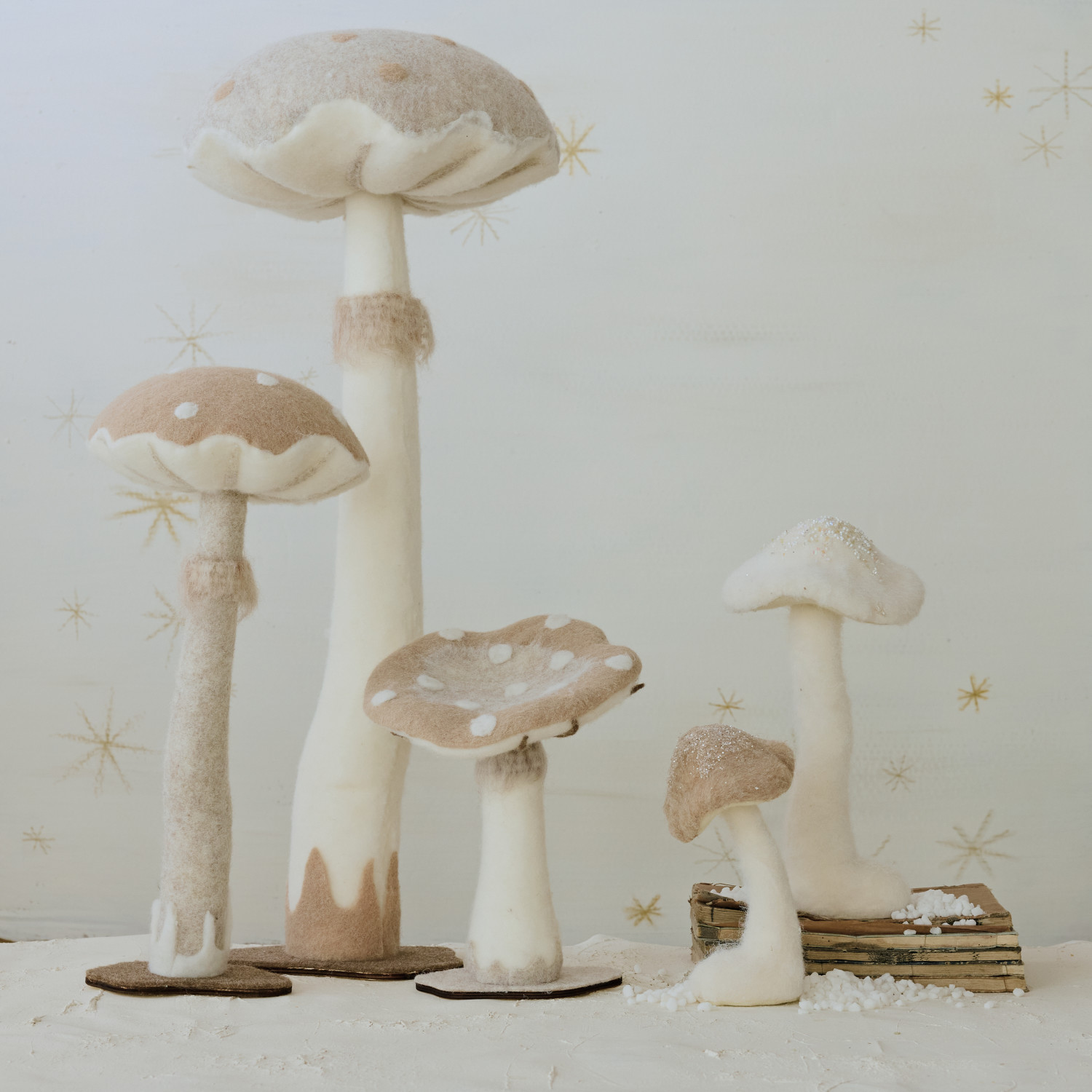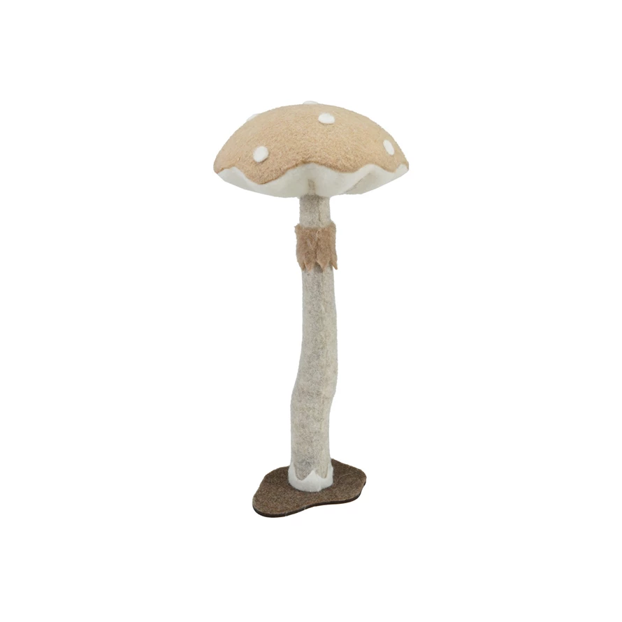 Catalog Name: 8-1/2" Round x 20-1/2"H Foam & Fabric Mushroom on Base, Cream Color & Brown