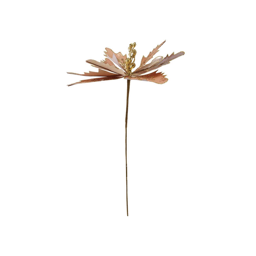 Faux Flower Pick with Glitter, Gold Finish & Blush Color
