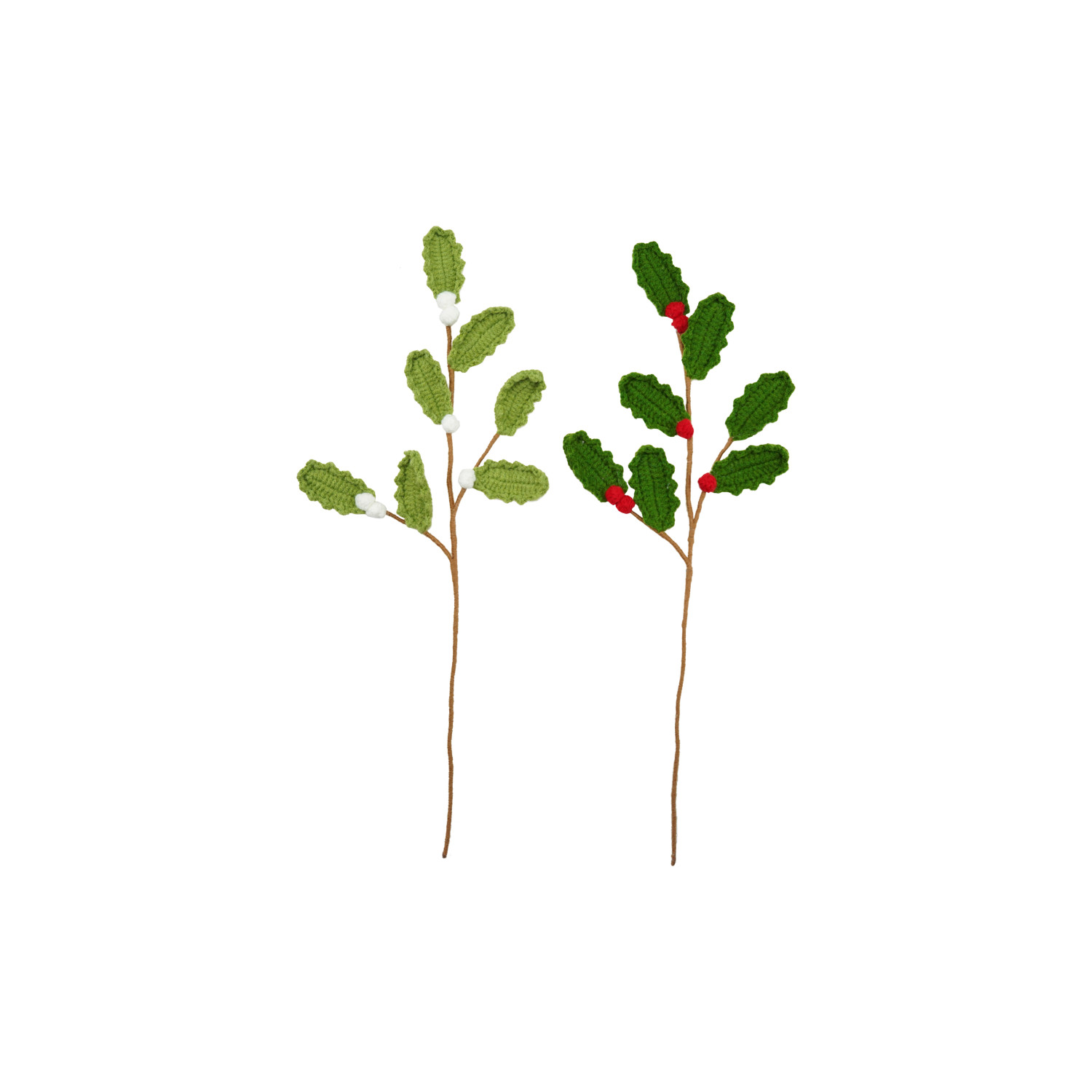 Catalog Name: 18-1/2"H Crocheted Holly Spray, 2 Colors